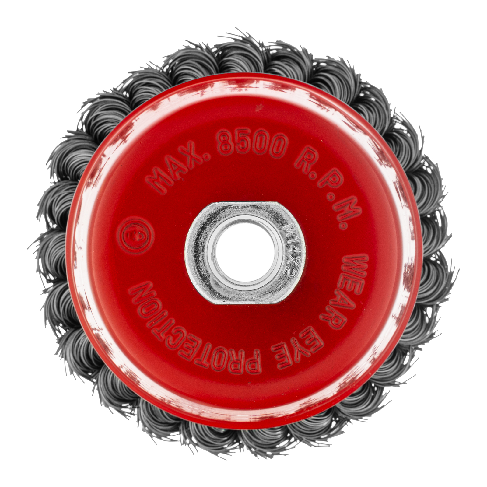 Двухрядная щетка Matrix «Чашка» 74682 диаметром 100 мм, с щетиной из крученой проволоки толщиной 0,5 мм, устанавливается на вал углошлифовальной машины с помощью гайки М14. Рекомендованная максимальная скорость вращения — до 8500 об/мин. Оснастка оптимальна для грубой (черновой) обработки: снятия старого слоя лакокрасочного покрытия и ржавчины, удаления загрязнений, зачистки сварных швов. Эффективно справляется с зачисткой больших поверхностей, подходит для выполнения работ повышенной сложности.