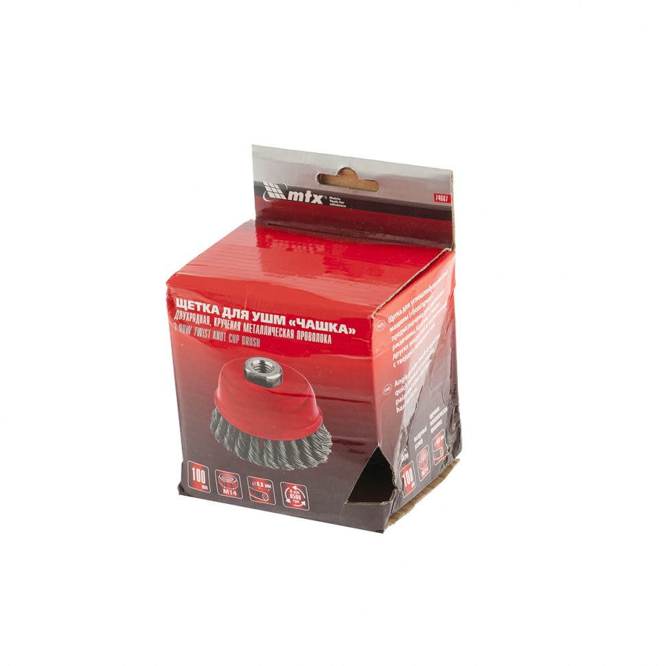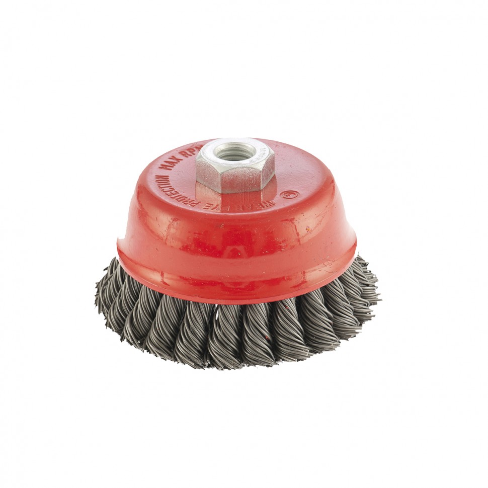 Двухрядная щетка Matrix «Чашка» 74687 диаметром 100 мм, с щетиной из крученой проволоки толщиной 0,8 мм, устанавливается на вал углошлифовальной машины с помощью гайки М14. Рекомендованная максимальная скорость вращения — до 8500 об/мин. Оснастка оптимальна для грубой (черновой) обработки: снятия старого слоя лакокрасочного покрытия и ржавчины, удаления загрязнений, зачистки сварных швов. Эффективно справляется с зачисткой больших поверхностей, подходит для выполнения работ повышенной сложности.