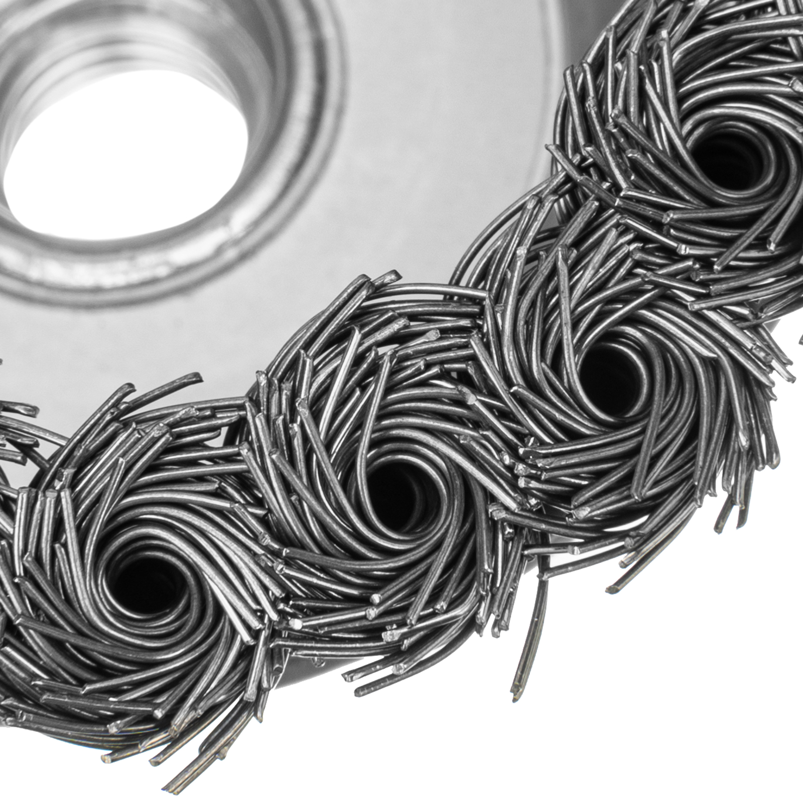 - Прочность и долговечность — щетина из крученой стальной проволоки выдерживает значительные нагрузки.