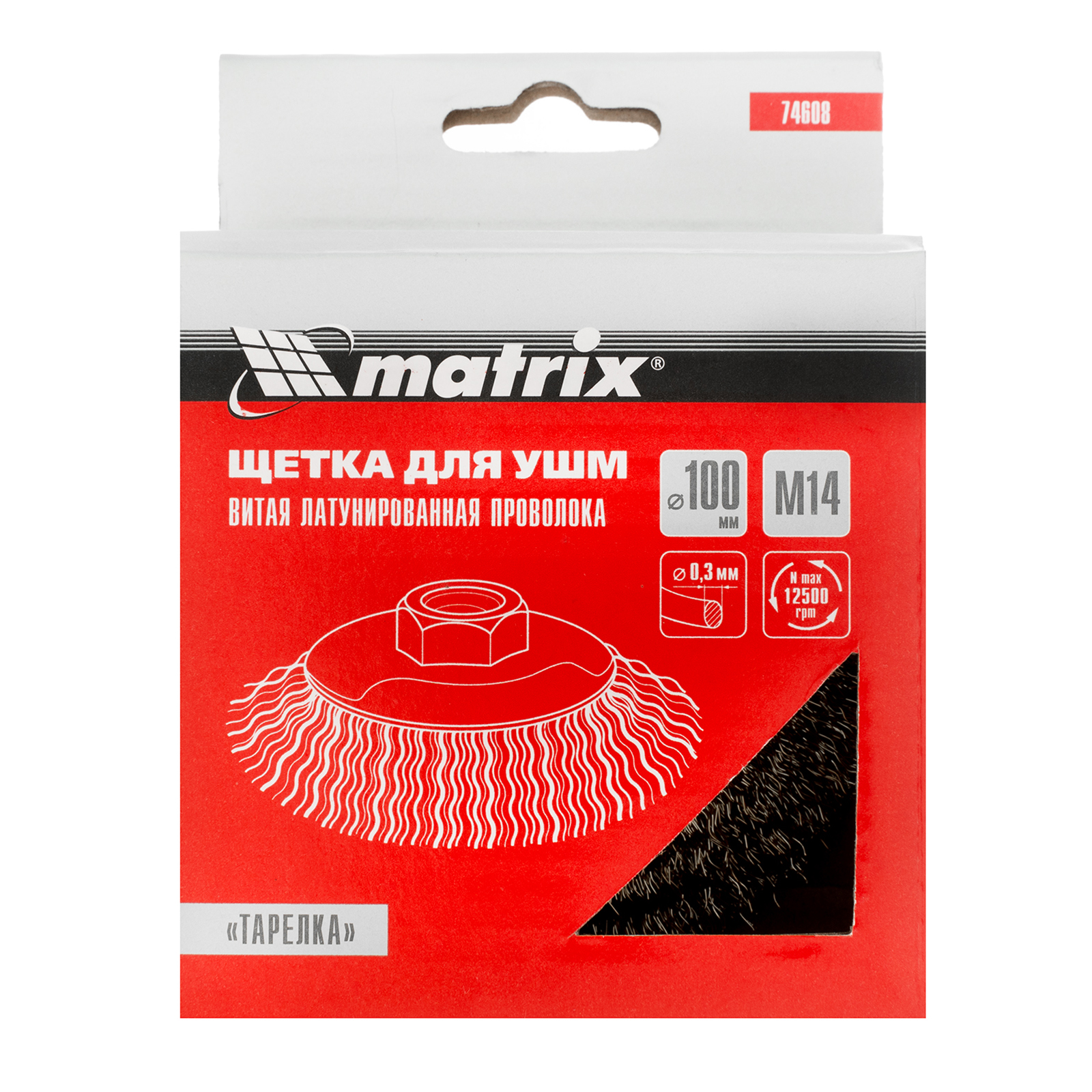 Щетка Matrix «тарелка» 74608 диаметром 100 мм, с щетиной из латунированной витой проволокой и гайкой М14,— насадка для УШМ, использующаяся для удаления с поверхностей ржавчины и загрязнений, старого слоя ЛКМ. Рекомендованная скорость вращения — не более 12500 об/мин. Щетка является универсальным инструментом, позволяющим обрабатывать как большие плоские поверхности, так и углы.