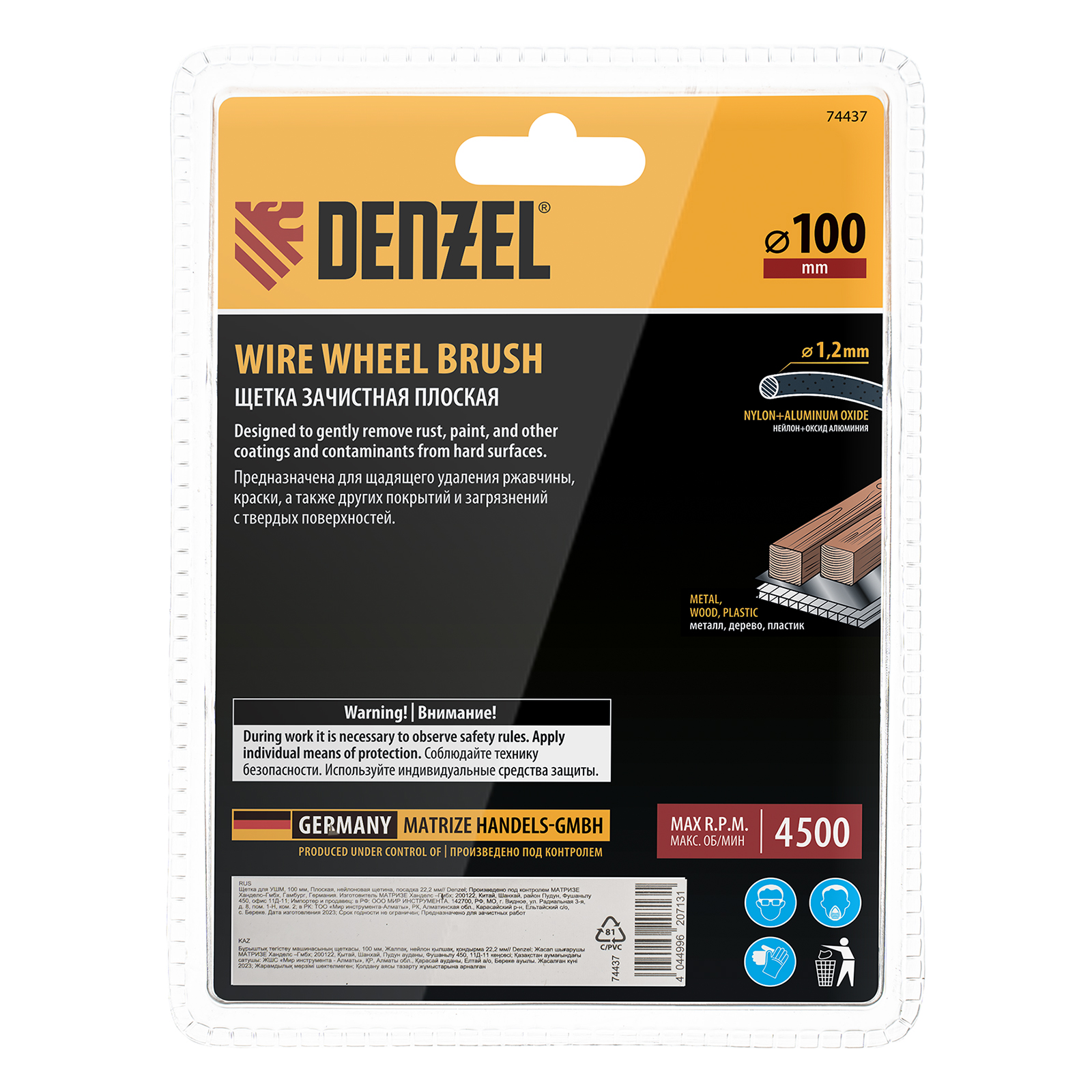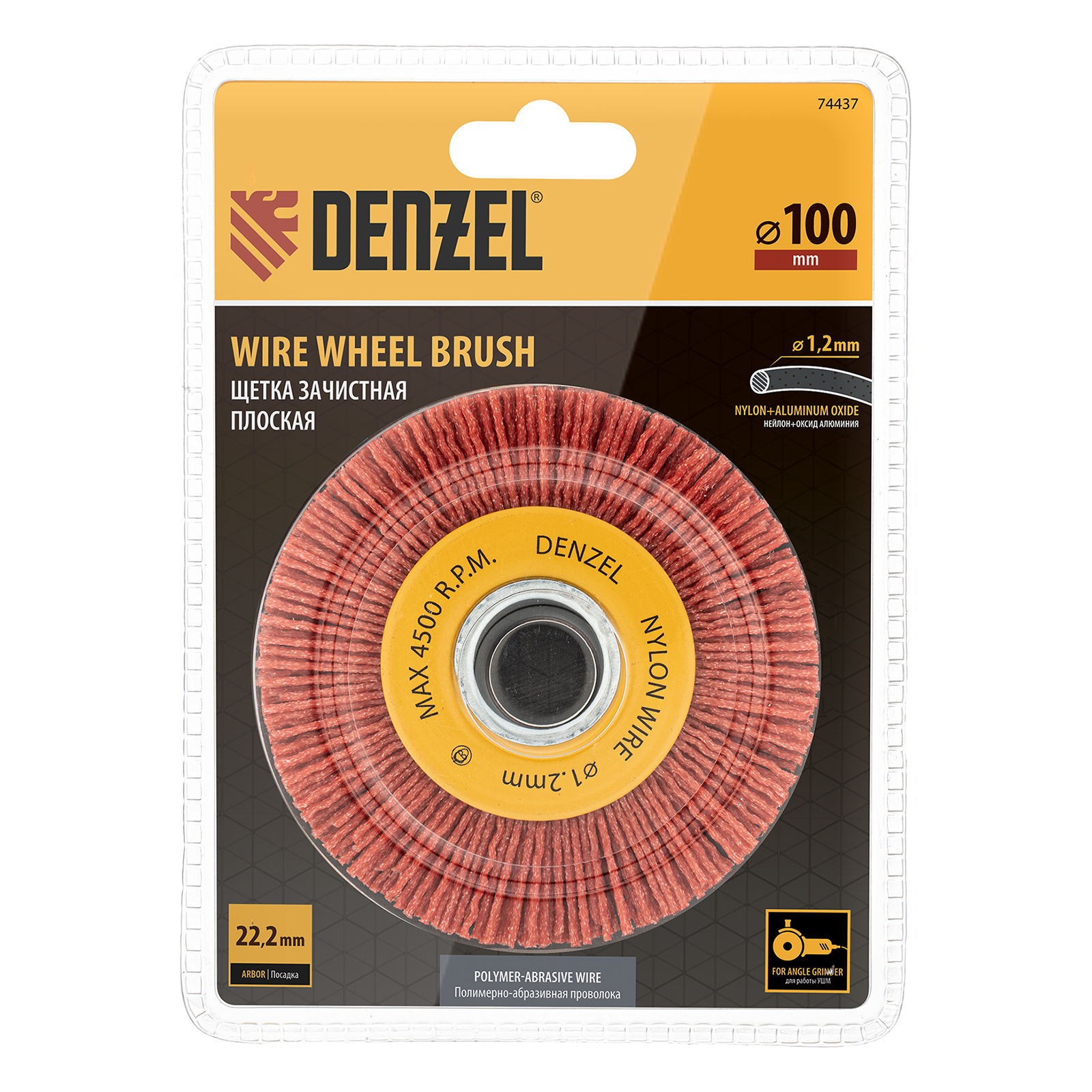 Плоская щетка Denzel 74437 диаметром 100 мм, с нейлоновой щетиной, с посадкой 22,2 мм, устанавливается на фланец УШМ. Предназначена для выполнения шлифовальных работ. Щетина изготовлена из высококачественного нейлона с нанесенным абразивом из оксида алюминия. удаления загрязнений, краски, пятен ржавчины с твердых поверхностей. Позволяет придать шероховатость поверхности, подходит для браширования древесины. Благодаря плоской форме насадка удобна для обработки пазов, изгибов, угловых соединений.