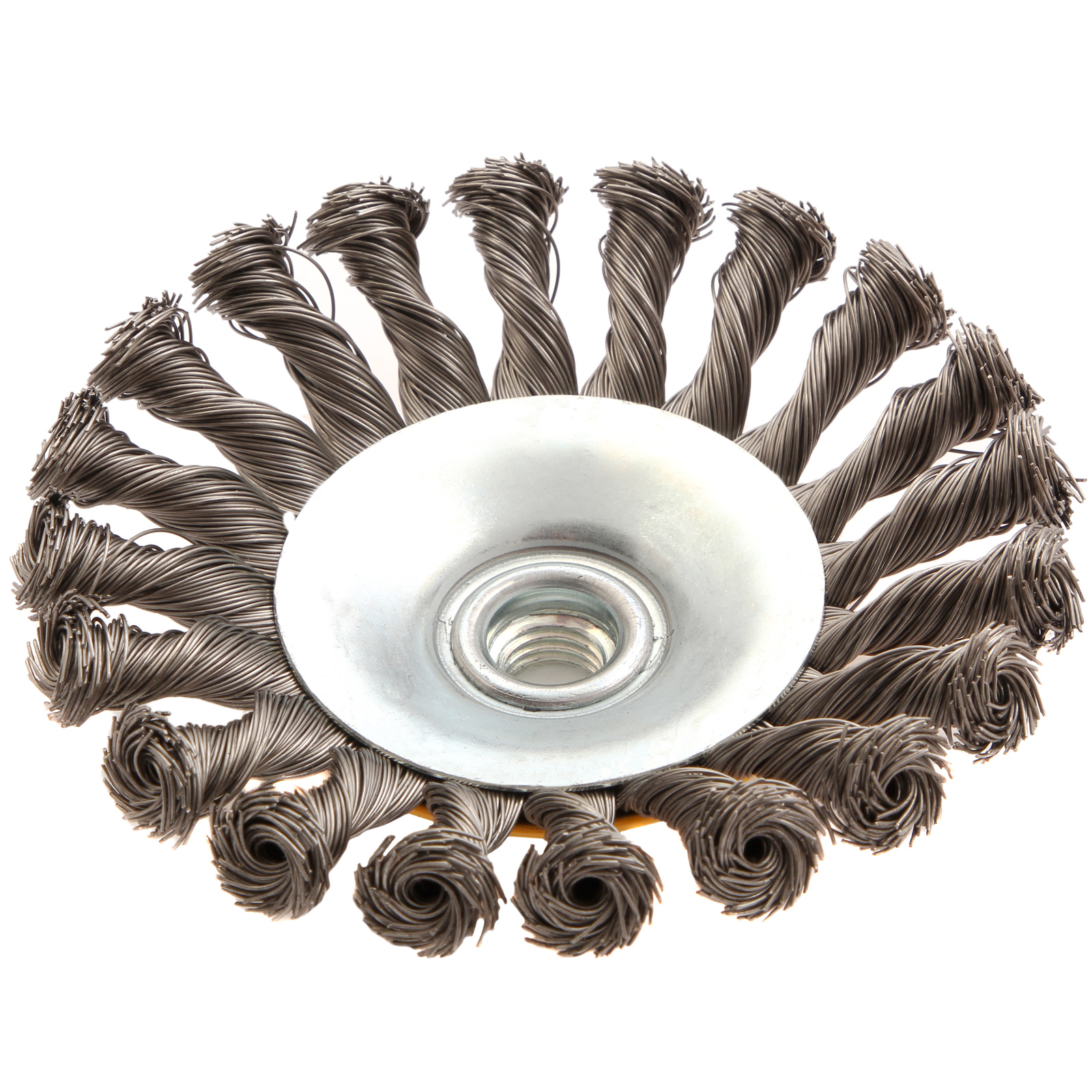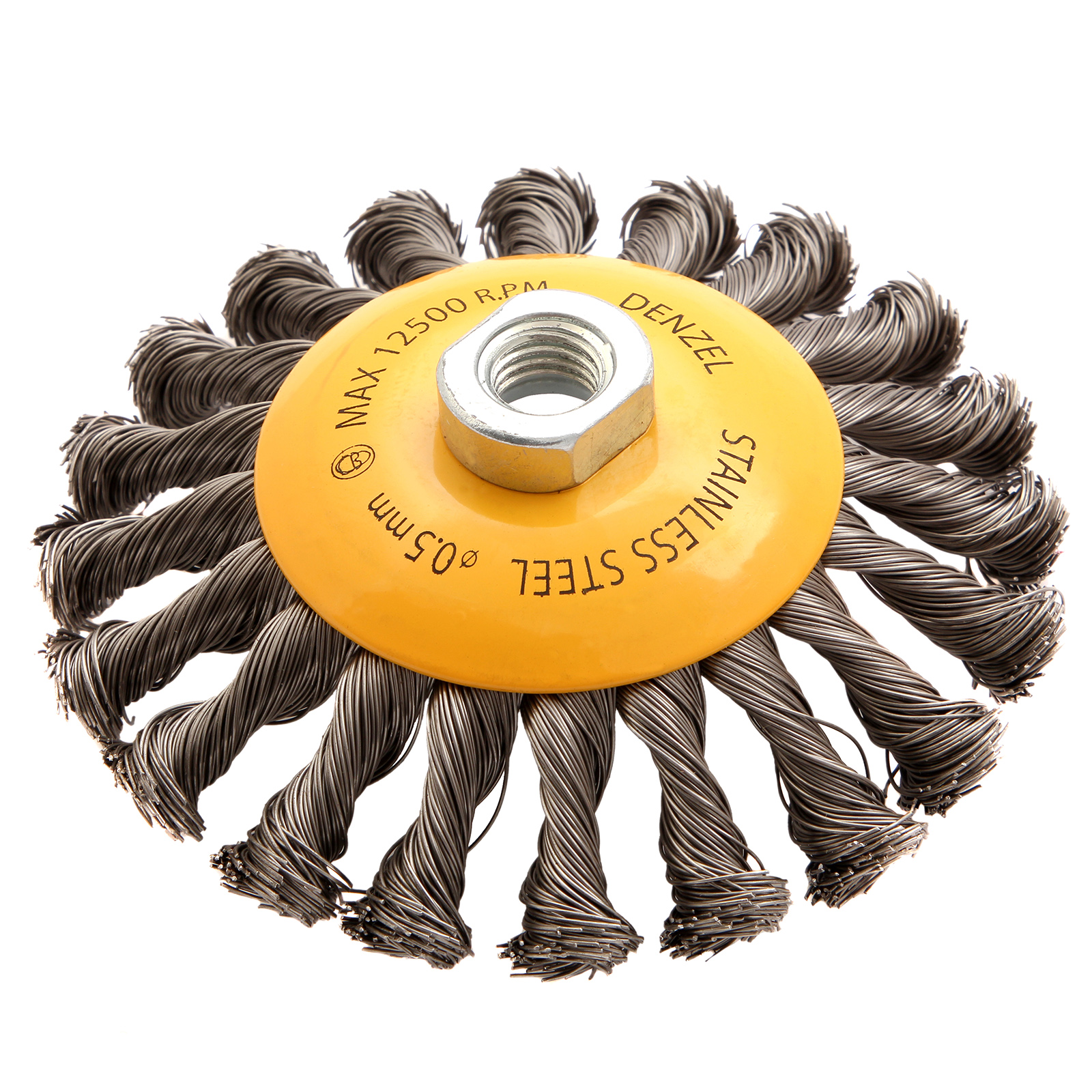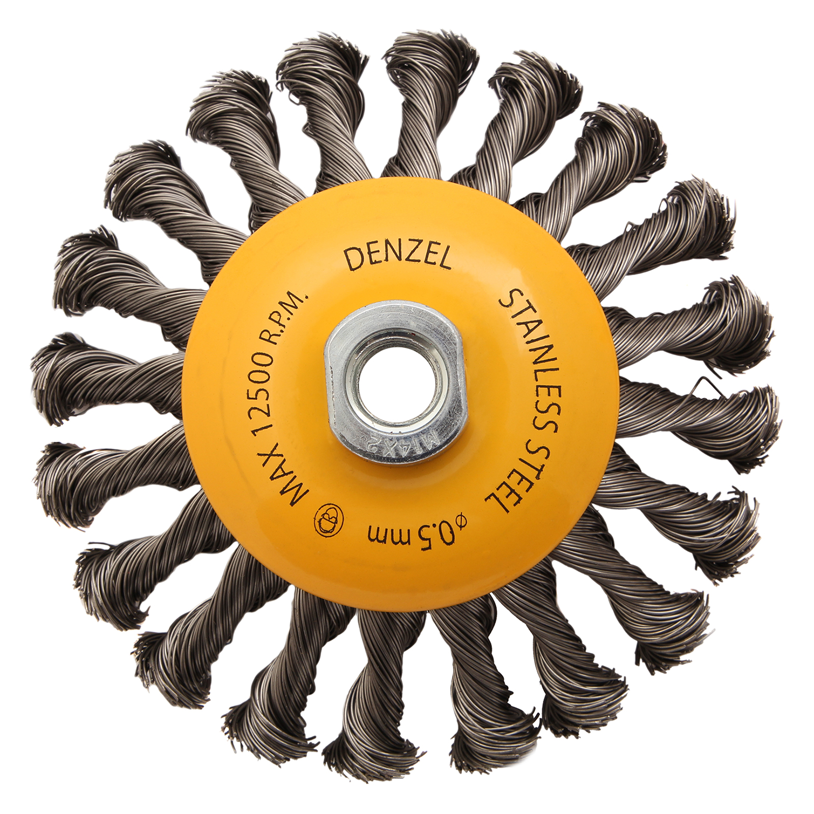 Щетка для УШМ, 125 мм, "Тарелка", крученая нержавеющая проволока 0.5 мм, М14 Denzel в Екатеринбурге