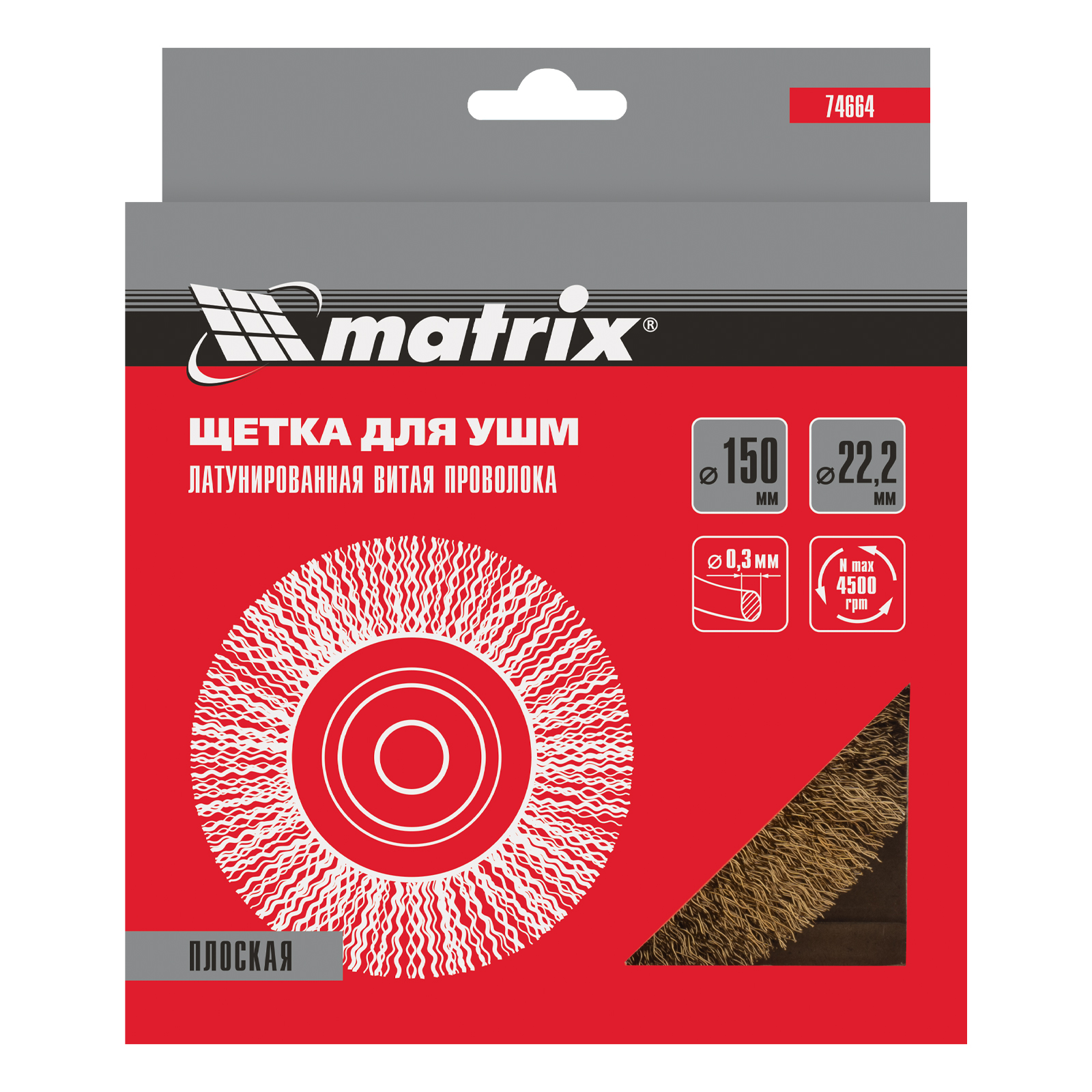 Плоская щетка для УШМ Matrix 74664 диаметром 150 мм, с щетиной из латунированной витой проволоки, посадкой 22,2 мм, предназначена для щадящей обработки поверхностей. Устанавливается на вал УШМ, поддерживающей скорость вращения не более 4500 об/мин. За счет плоской формы эффективно удаляет загрязнения, ржавчину и лакокрасочные покрытия в труднодоступных местах: углах и изгибах.