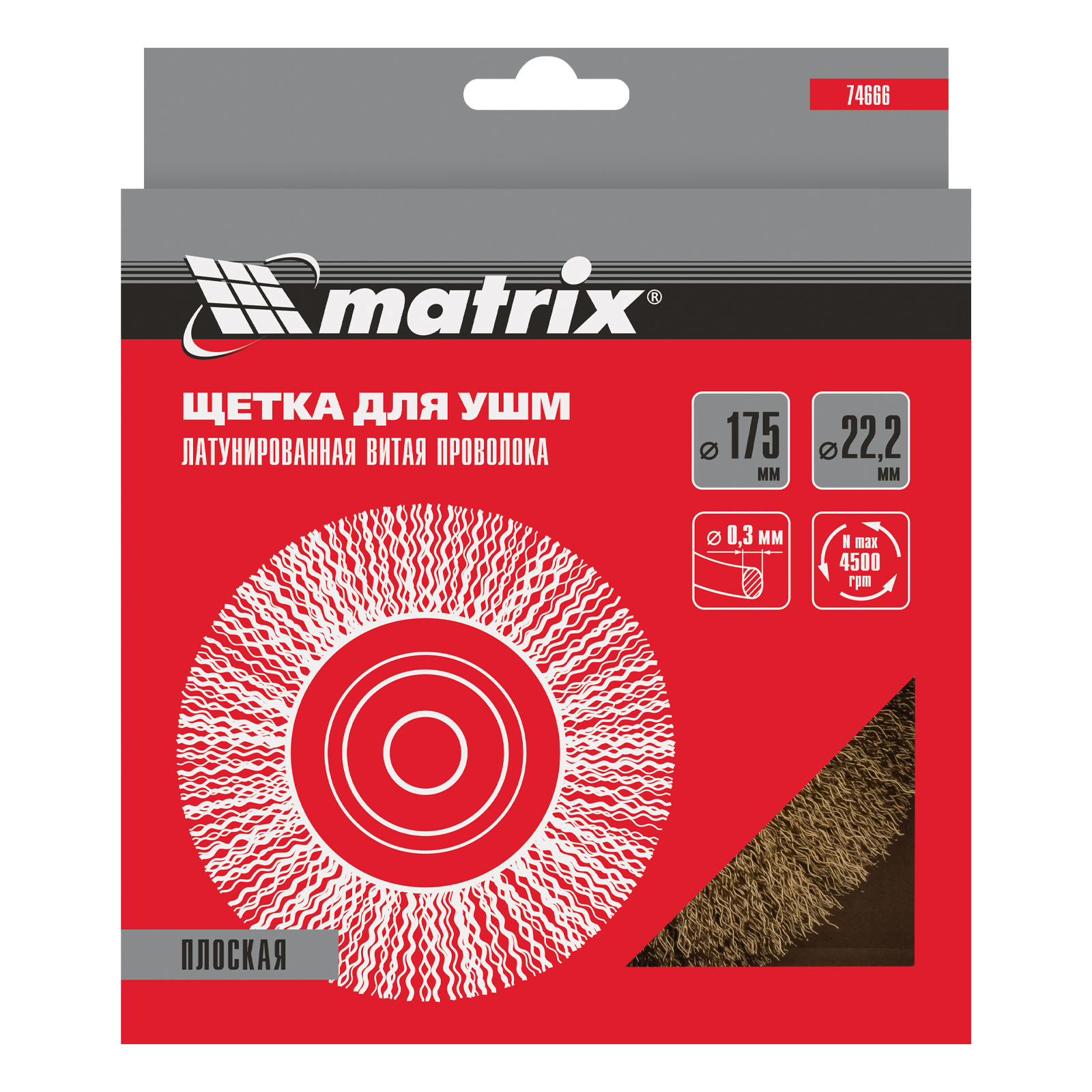 Плоская щетка для УШМ Matrix 74666 диаметром 175 мм, с щетиной из латунированной витой проволоки, посадкой 22,2 мм, предназначена для щадящей обработки поверхностей. Устанавливается на вал УШМ, поддерживающей скорость вращения не более 4500 об/мин. За счет плоской формы эффективно удаляет загрязнения, ржавчину и лакокрасочные покрытия в труднодоступных местах: углах и изгибах.