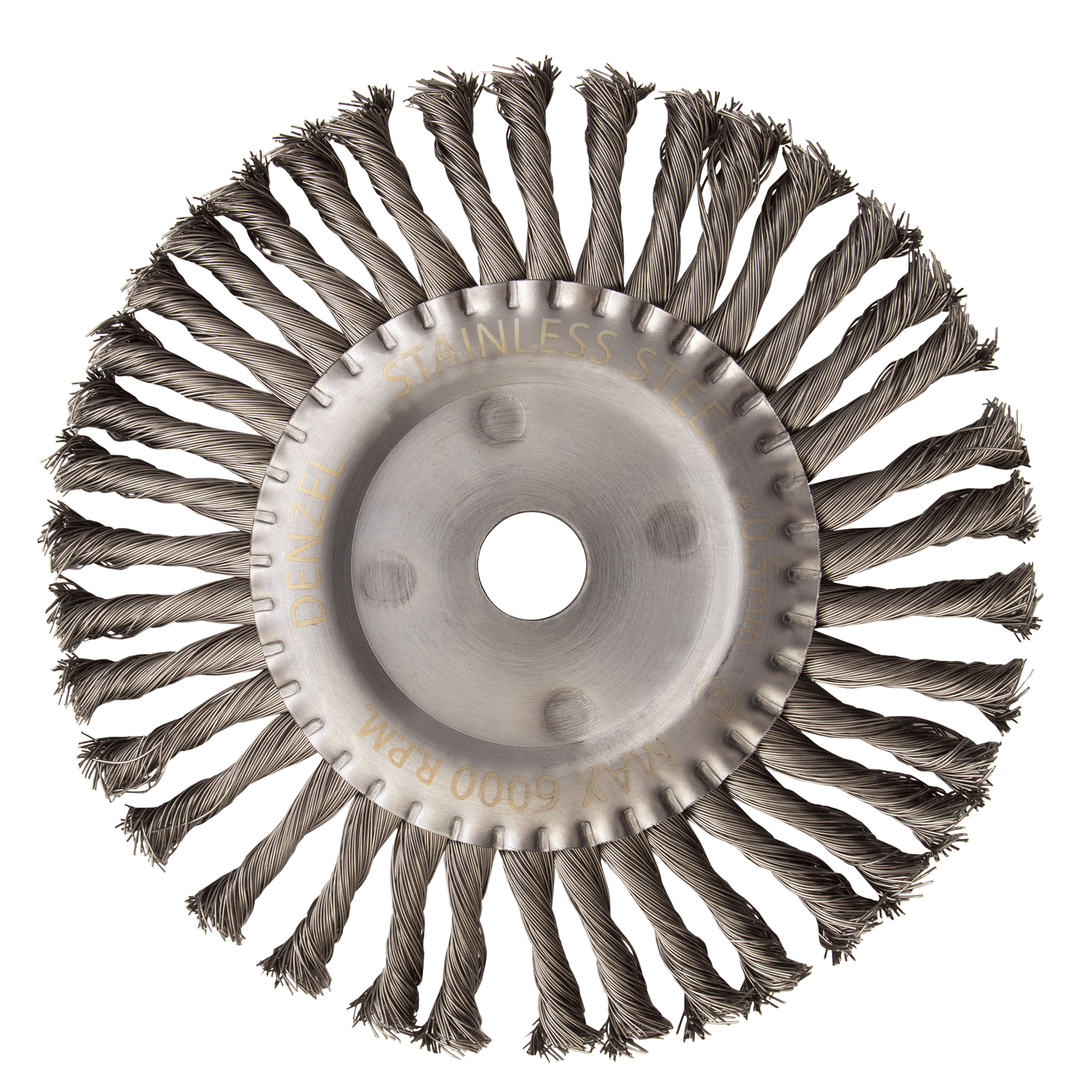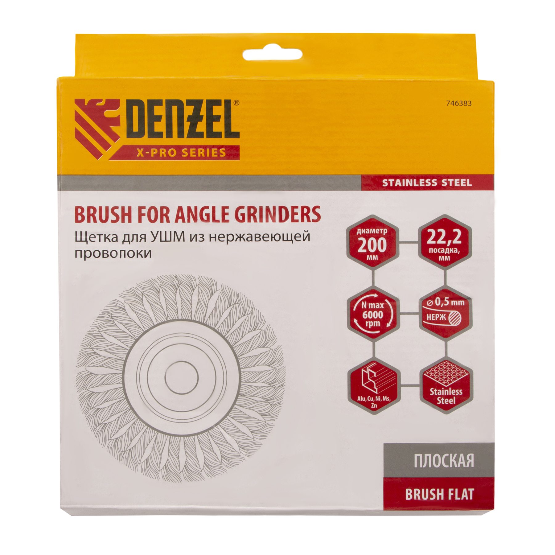 Щетка для УШМ, 200 мм, "Плоская", крученая нержавеющая проволока 0.5 мм, посадка 22.2 мм Denzel в Екатеринбурге