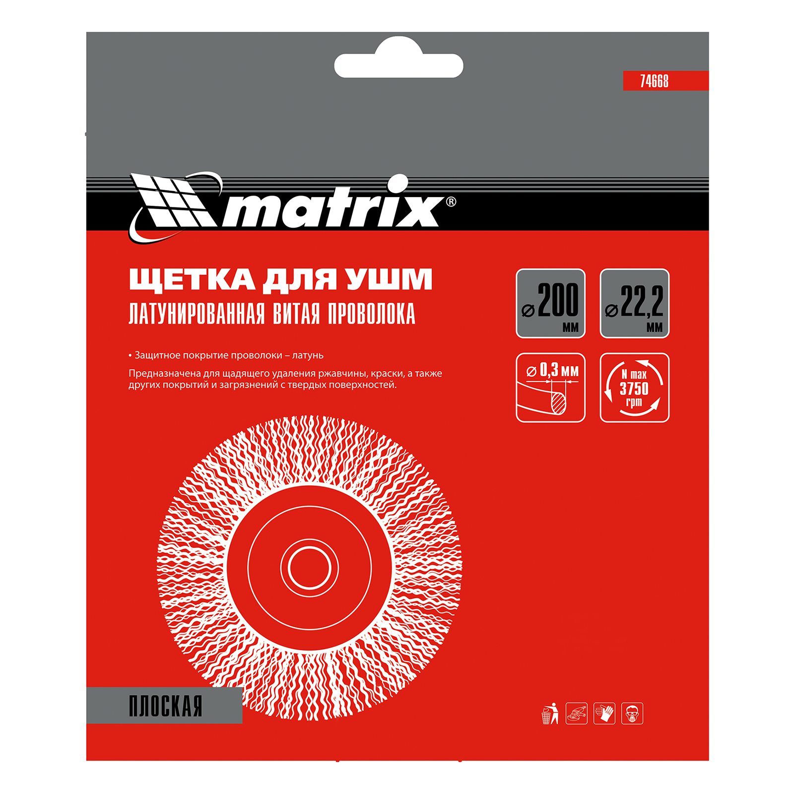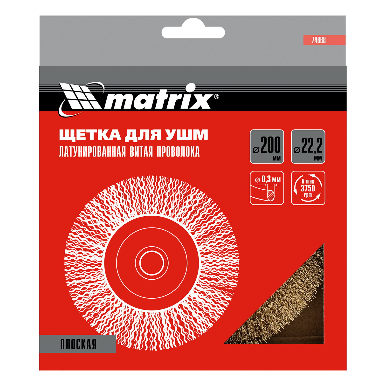Плоская щетка для УШМ Matrix 74668 диаметром 200 мм, с щетиной из латунированной витой проволоки, посадкой 22,2 мм, предназначена для щадящей обработки поверхностей. Устанавливается на вал УШМ, поддерживающей скорость вращения не более 3750 об/мин. За счет плоской формы эффективно удаляет загрязнения, ржавчину и лакокрасочные покрытия в труднодоступных местах: углах и изгибах.