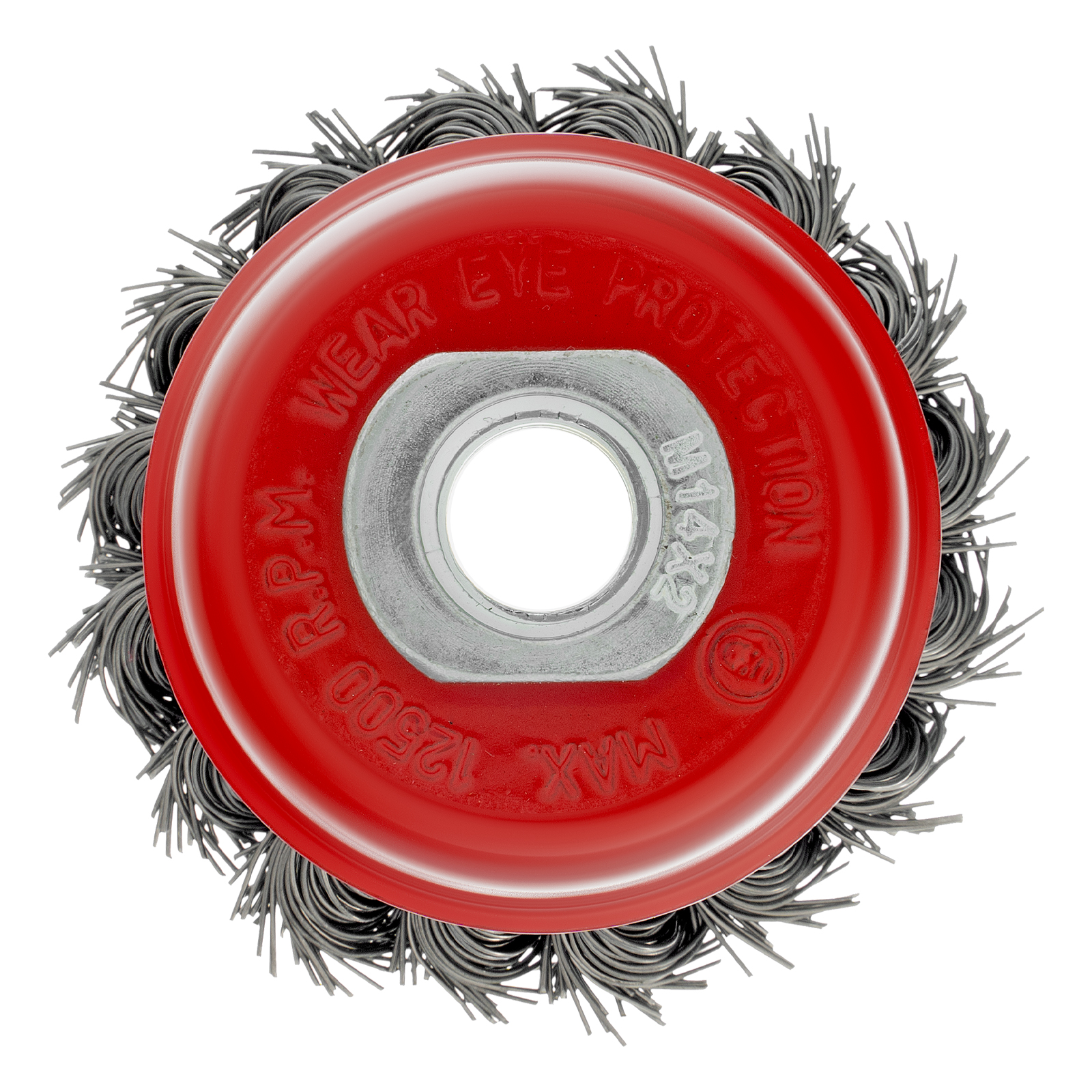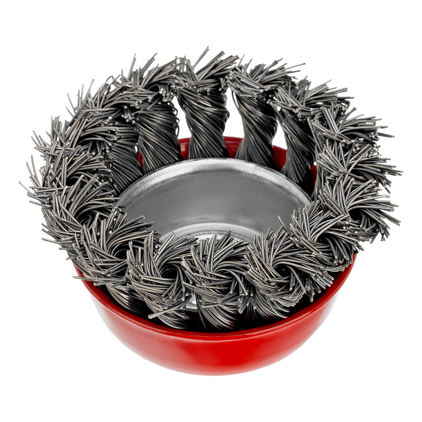 Щетка Matrix «Чашка» 74620 диаметром 65 мм, с присоединительной резьбой М14, с щетиной из крученой проволоки диаметром 0,5 мм, устанавливается на УШМ, поддерживающую работу со скоростью 12500 об/мин. Изделие предназначено для грубой (черновой) обработки поверхностей, подходит для удаления загрязнений, снятия толстого слоя ржавчины, ЛКМ, зачистки сварных швов.