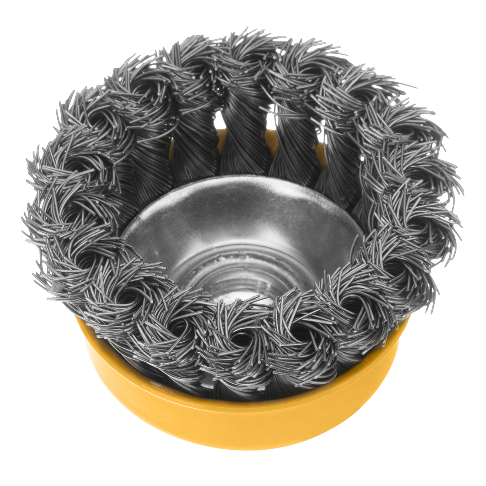 Щетка для УШМ, 75 мм, "Чашка", крученая нержавеющая проволока 0.5 мм, М14 Denzel в Екатеринбурге