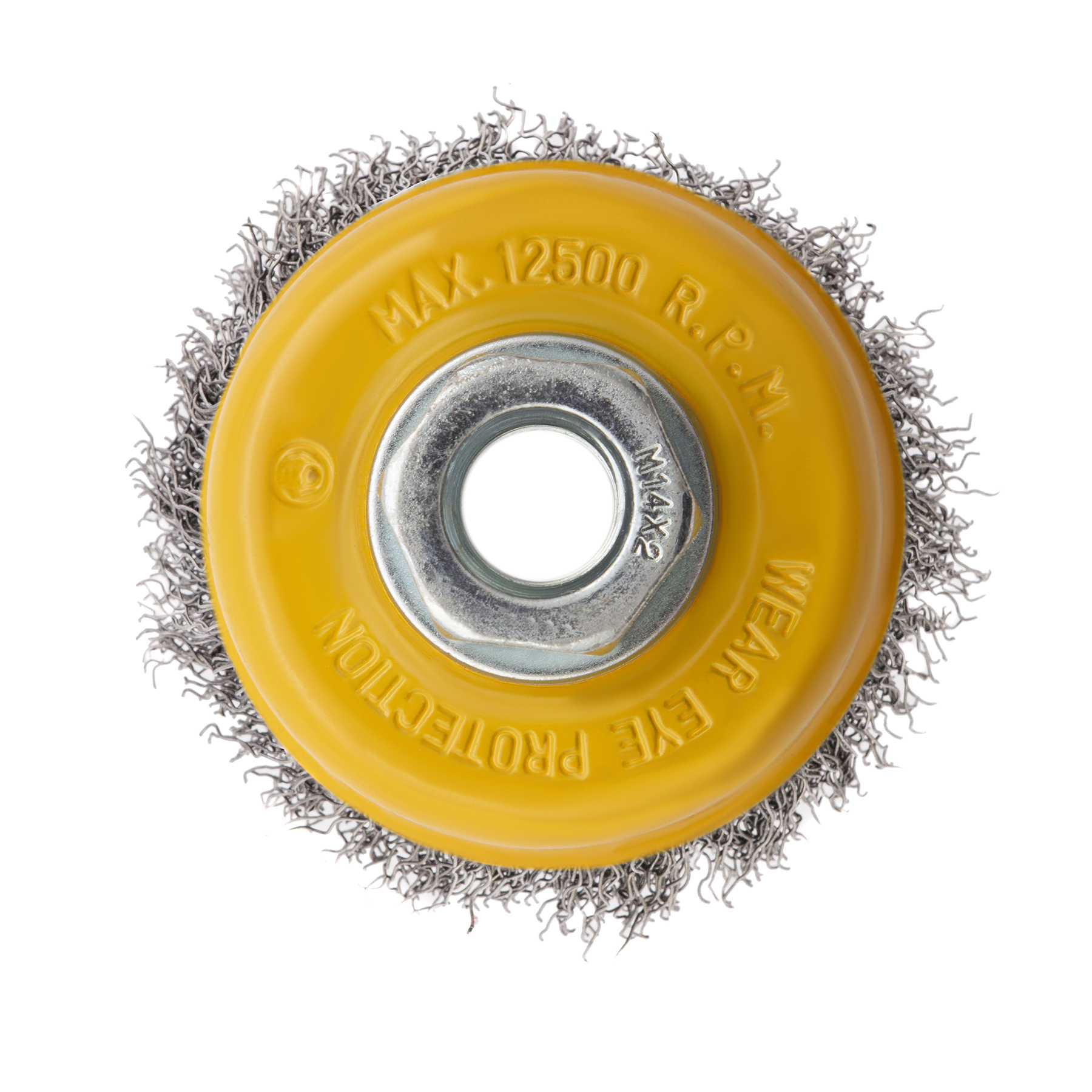 Щетка устанавливается на вал углошлифовальной машины (УШМ) и предназначена для работы с максимальной скоростью 12500 об/мин. Во время работы обязательно соблюдение техники безопасности и использование средств индивидуальной защиты.