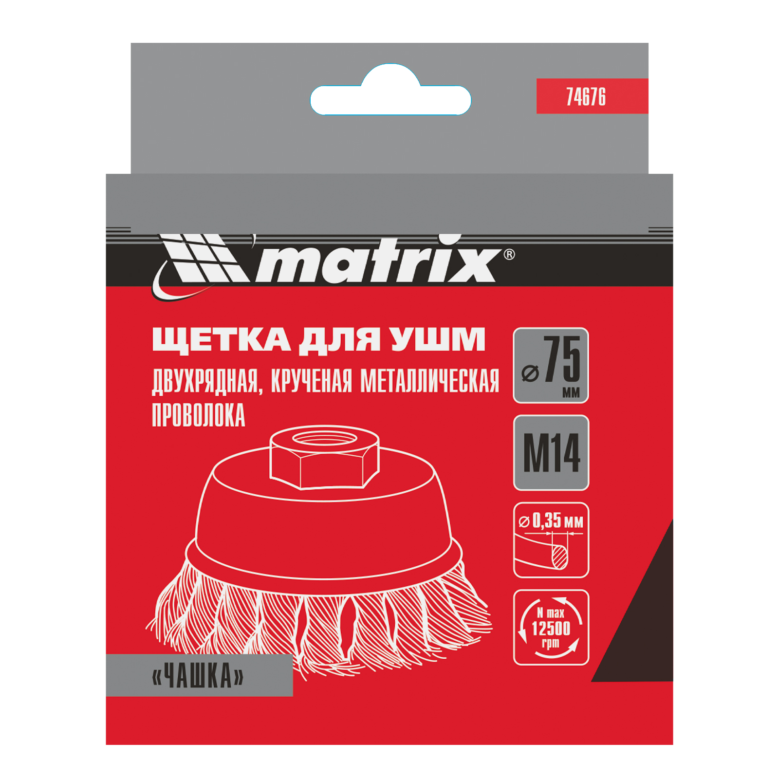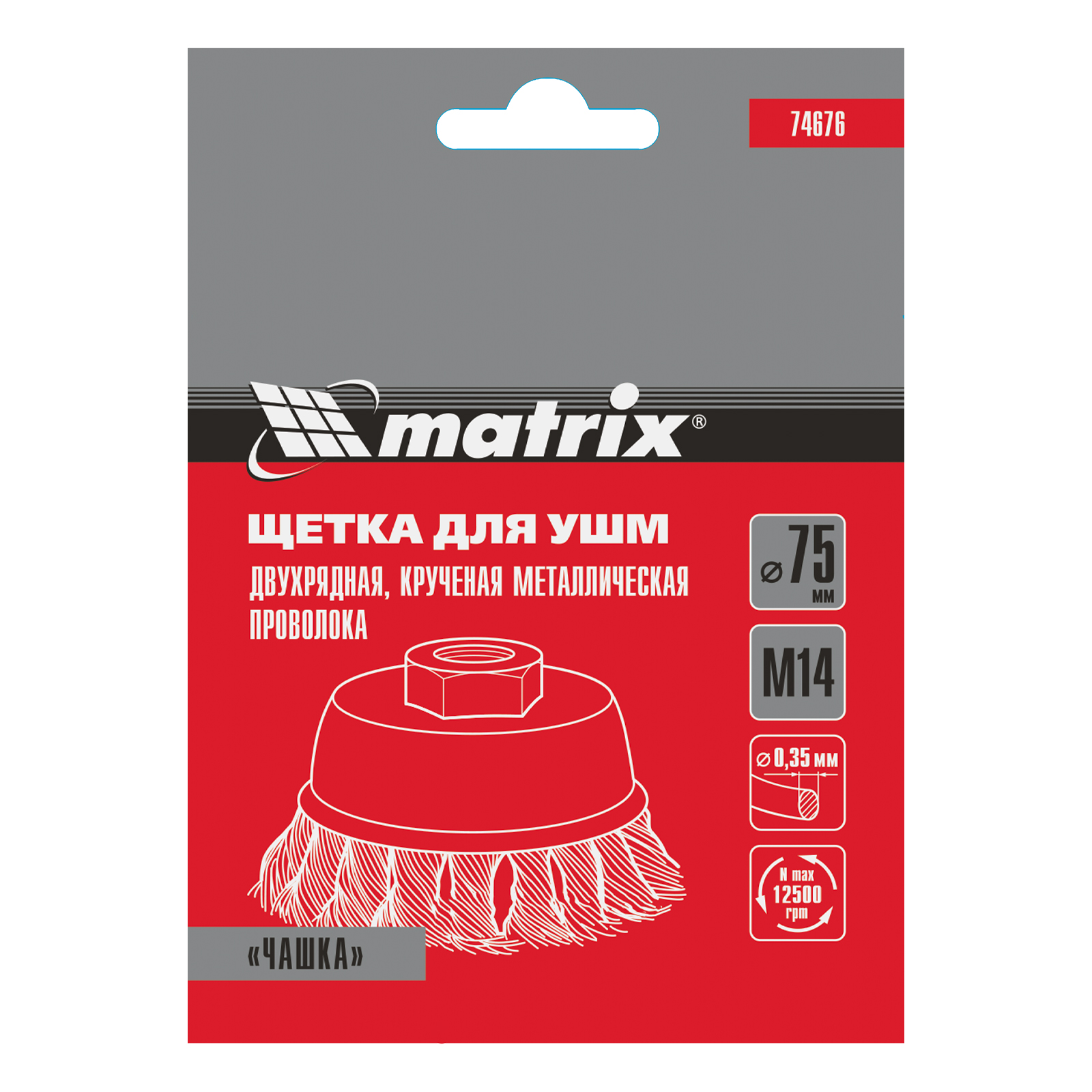 Щетка для УШМ, 75 мм, М14, "чашка", двухрядная, крученая проволока 0.35 мм Matrix в Екатеринбурге