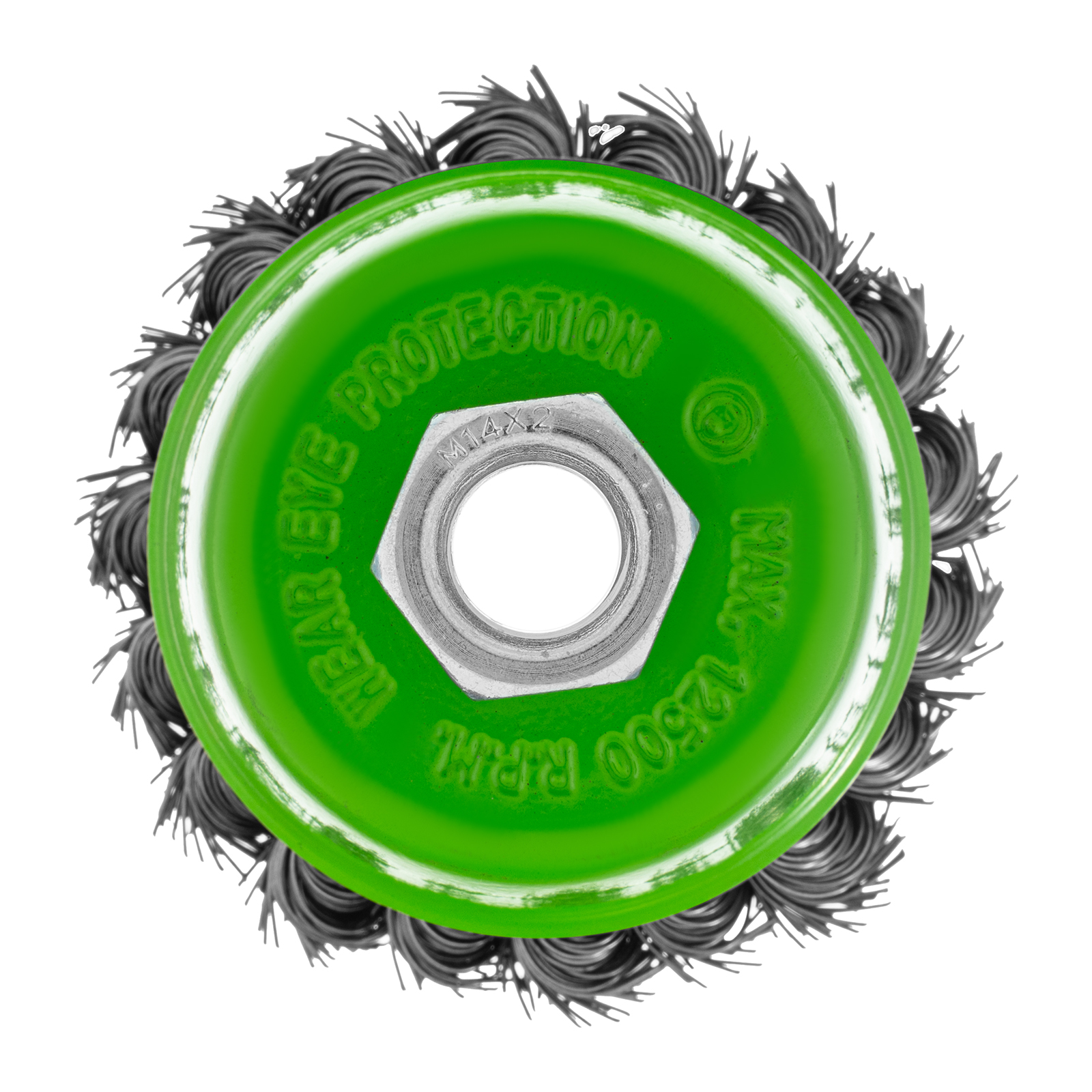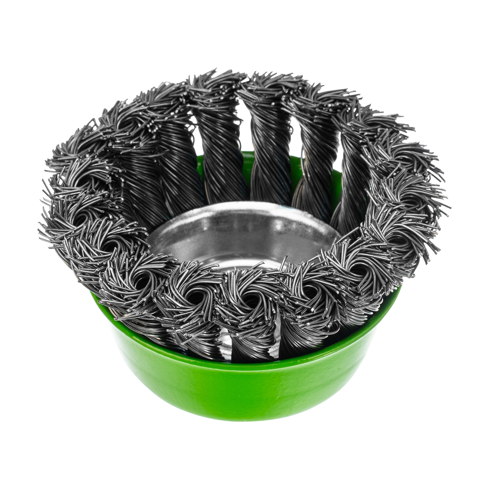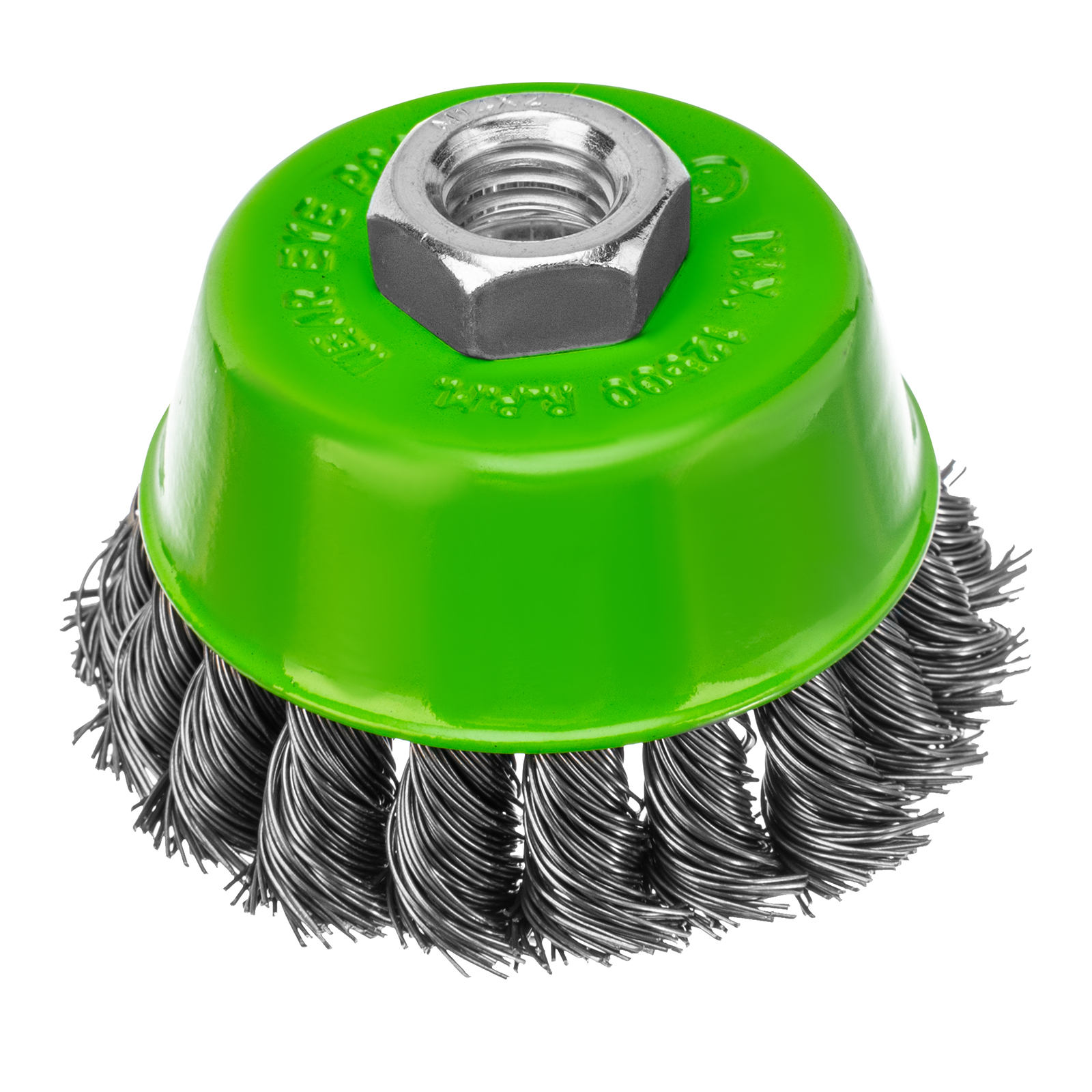 Щетка Сибртех «Чашка» 746247 диаметром 75 мм, с присоединительной резьбой М14, с щетиной из крученой проволоки диаметром 0,5 мм, устанавливается на УШМ, поддерживающую работу со скоростью 12500 об/мин. Изделие предназначено для грубой (черновой) обработки поверхностей и подходит для удаления загрязнений, снятия толстого слоя ржавчины, ЛКМ, зачистки сварных швов.