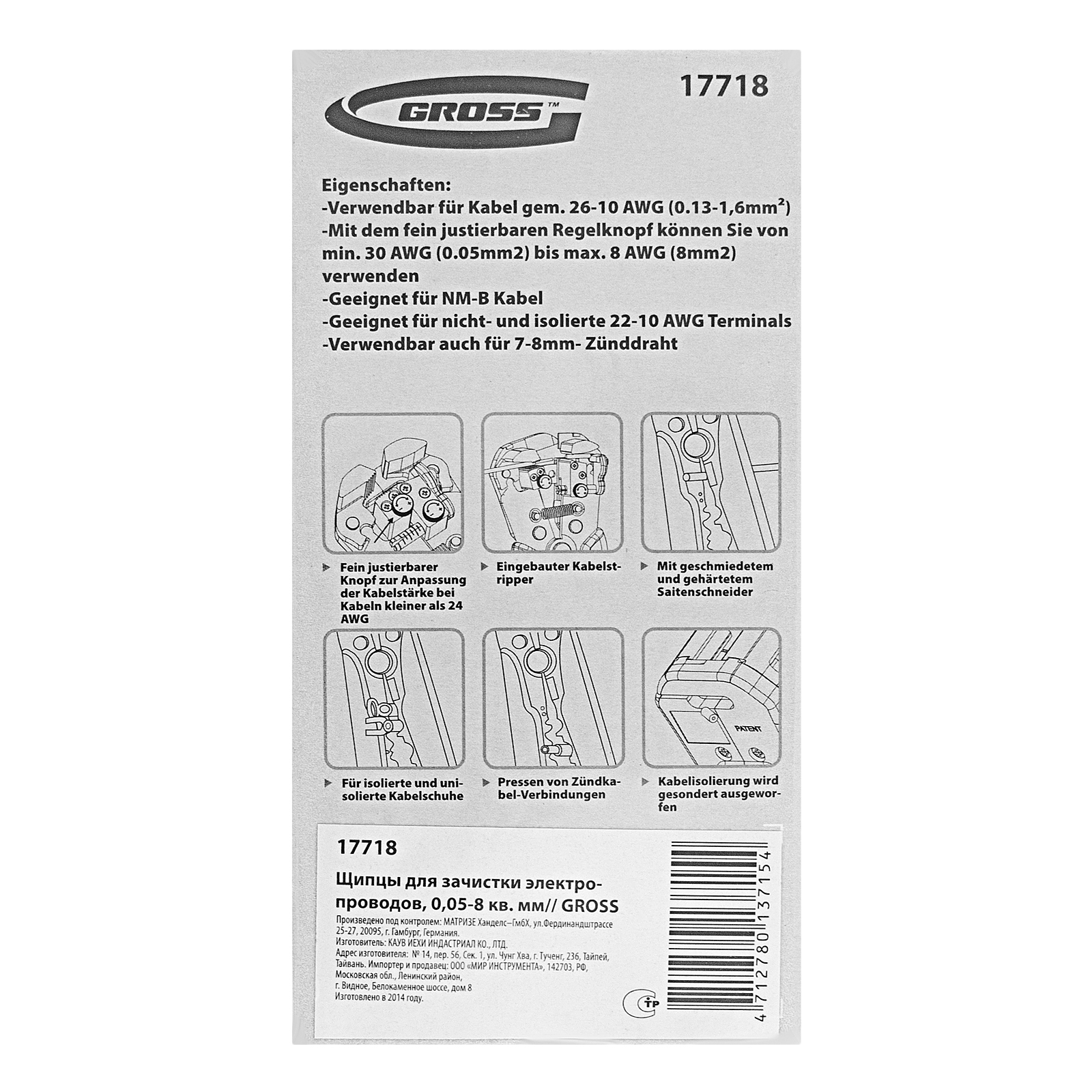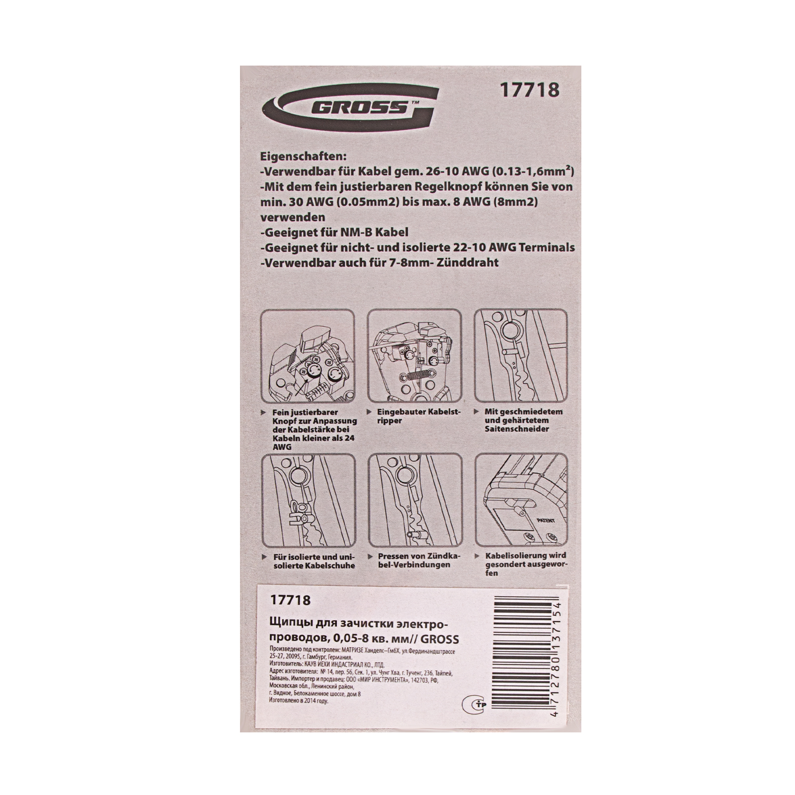 Щипцы для зачистки электропроводов, 0.05-8 кв.мм Gross в Екатеринбурге