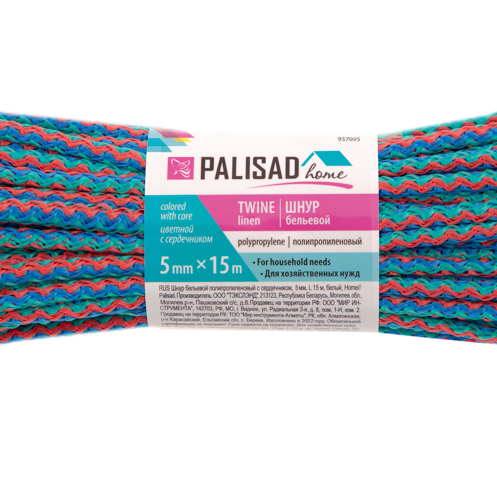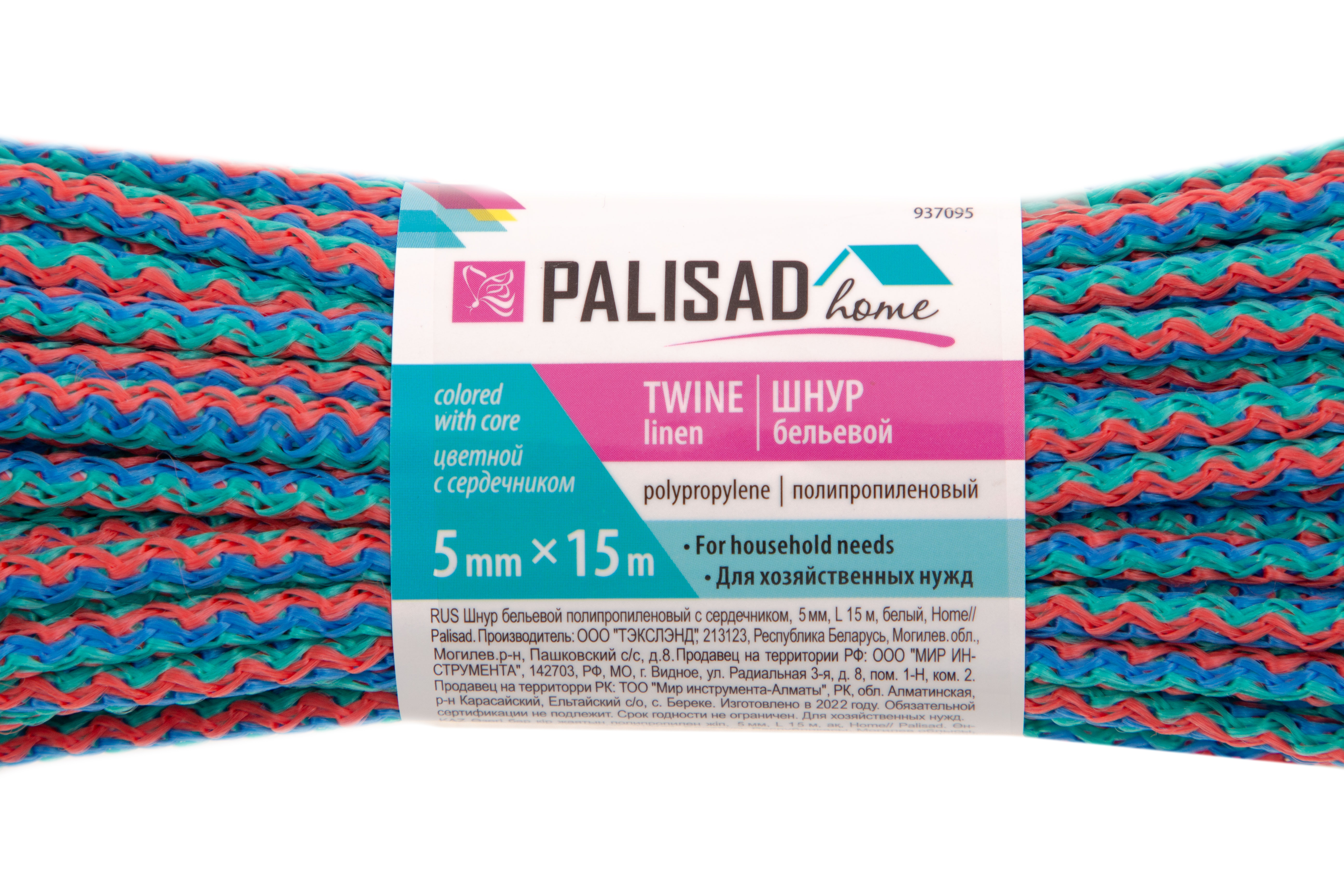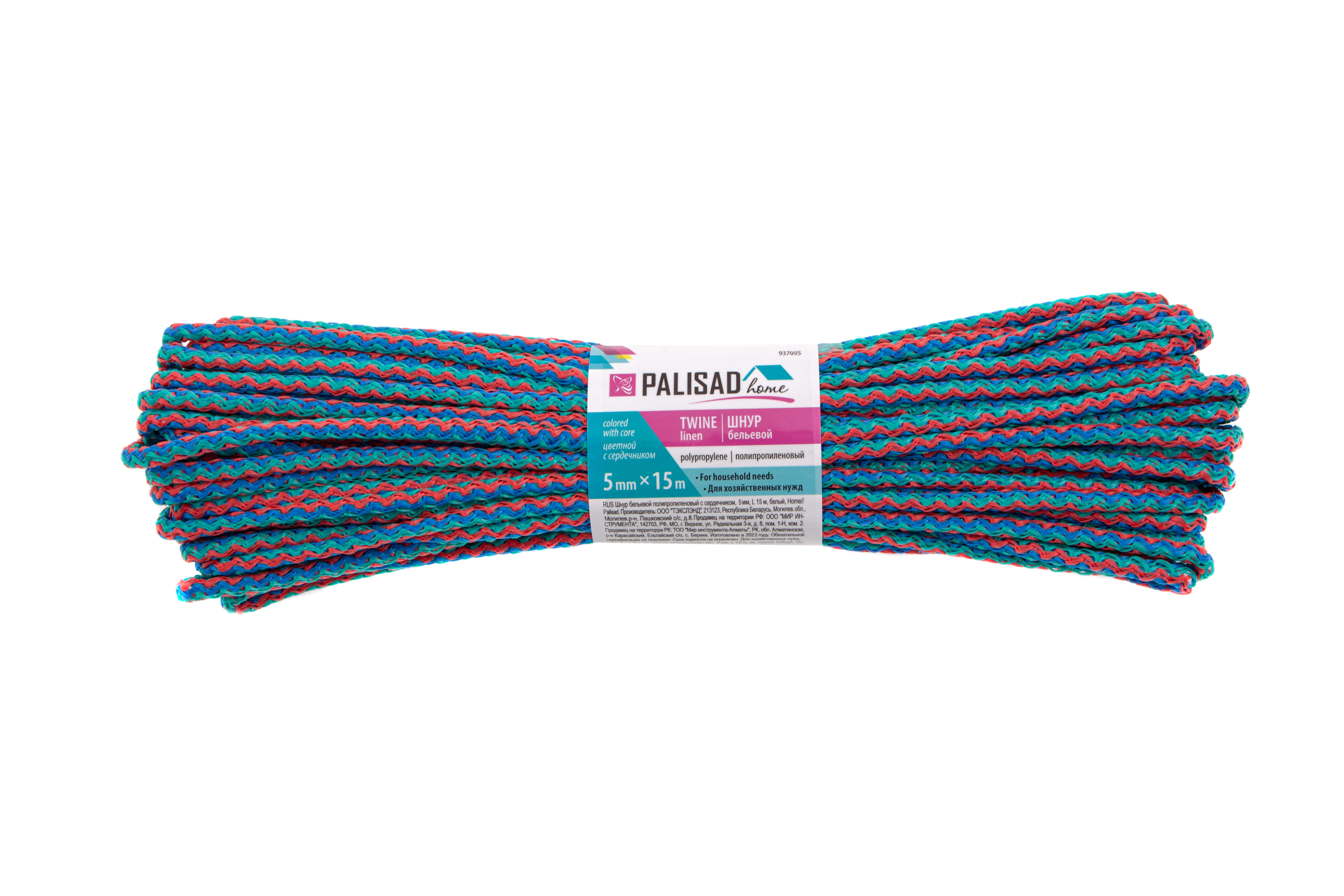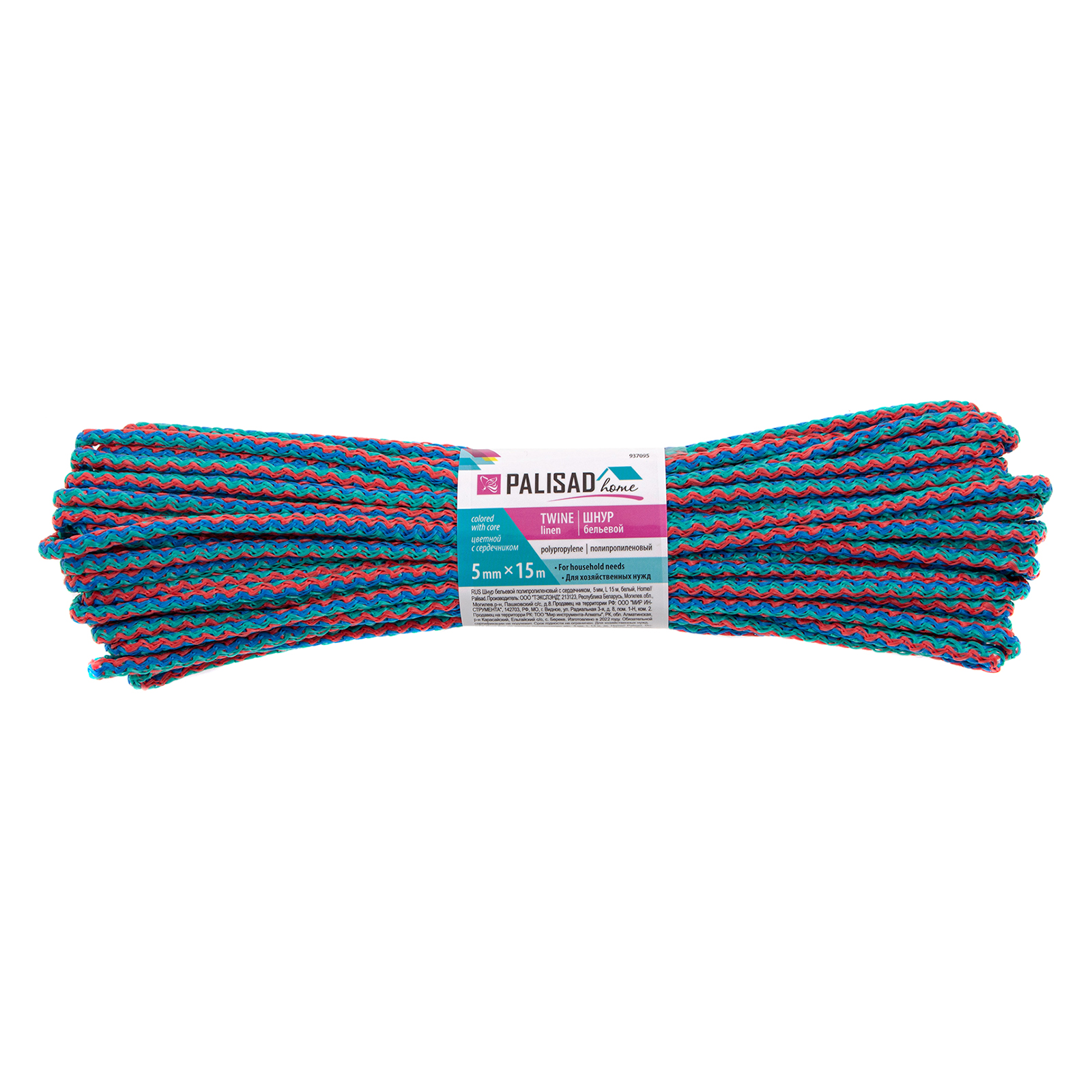 Шнур бельевой полипропиленовый с сердечником, 5 мм, L 15 м, цветной, Home Palisad в Екатеринбурге