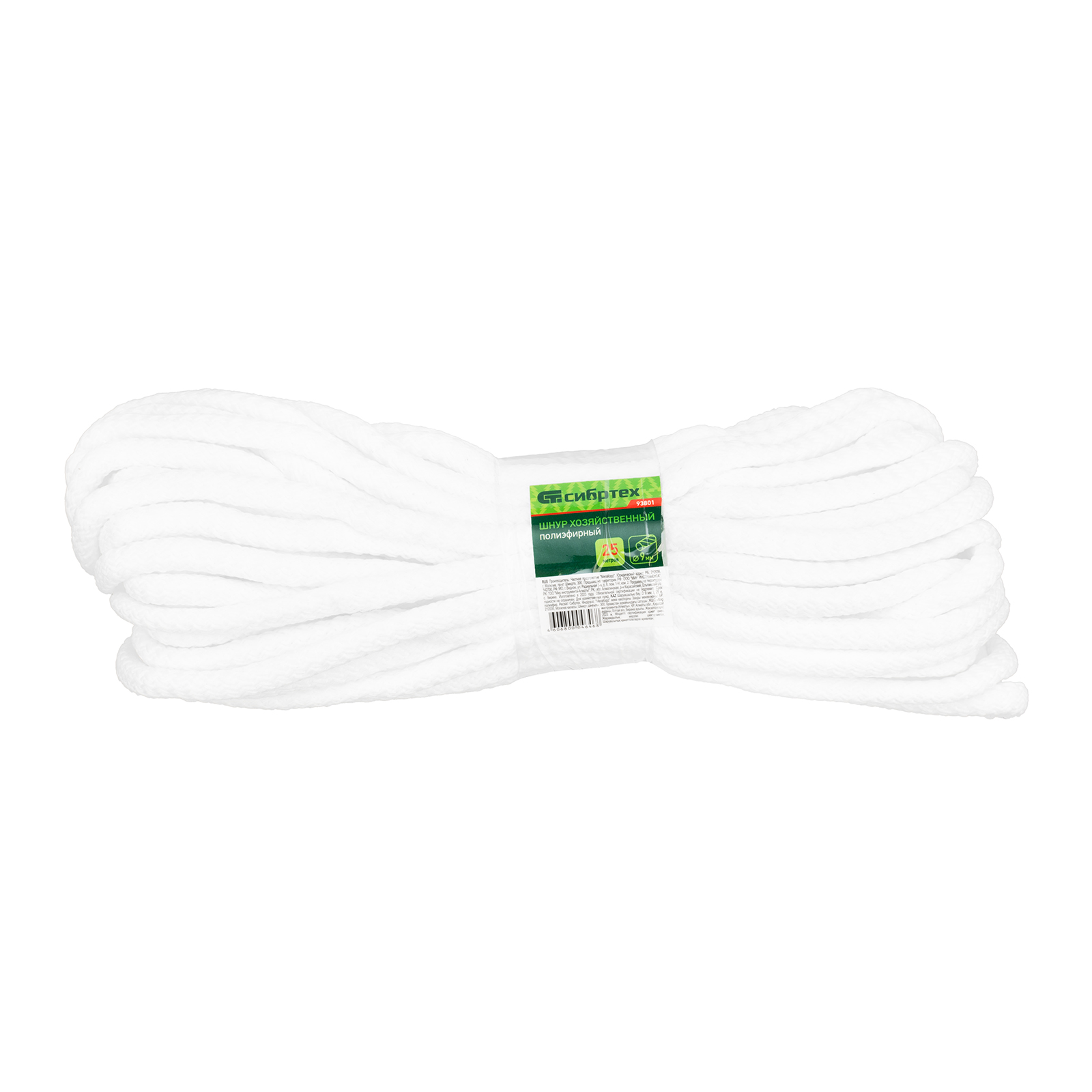 Шнур хозяйственный, D 9 мм, L 25 м, полиэфирный Сибртех в Екатеринбурге