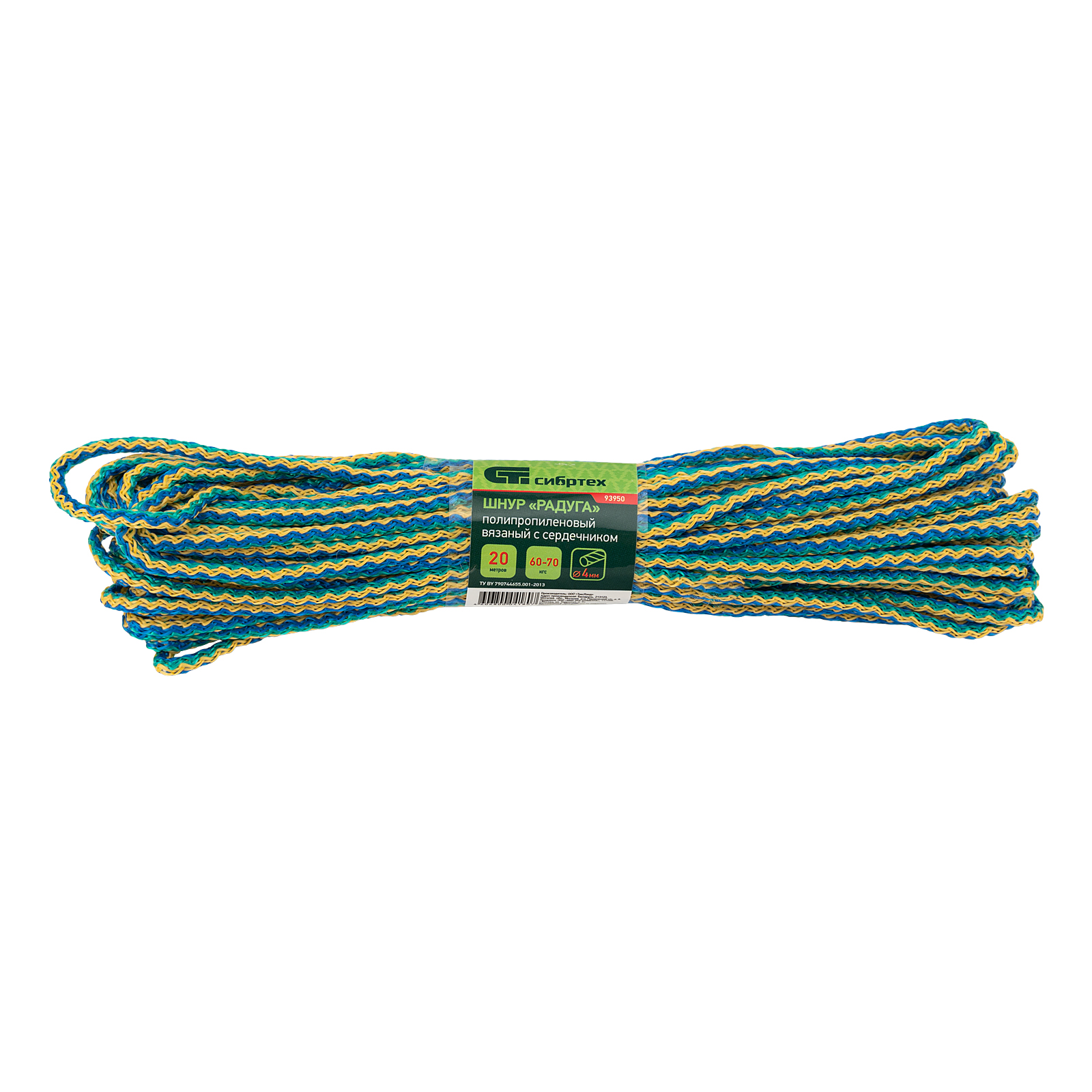 Шнур вязаный полипропиленовый с серд."Радуга", 4 мм, L 20 м, Сибртех в Екатеринбурге