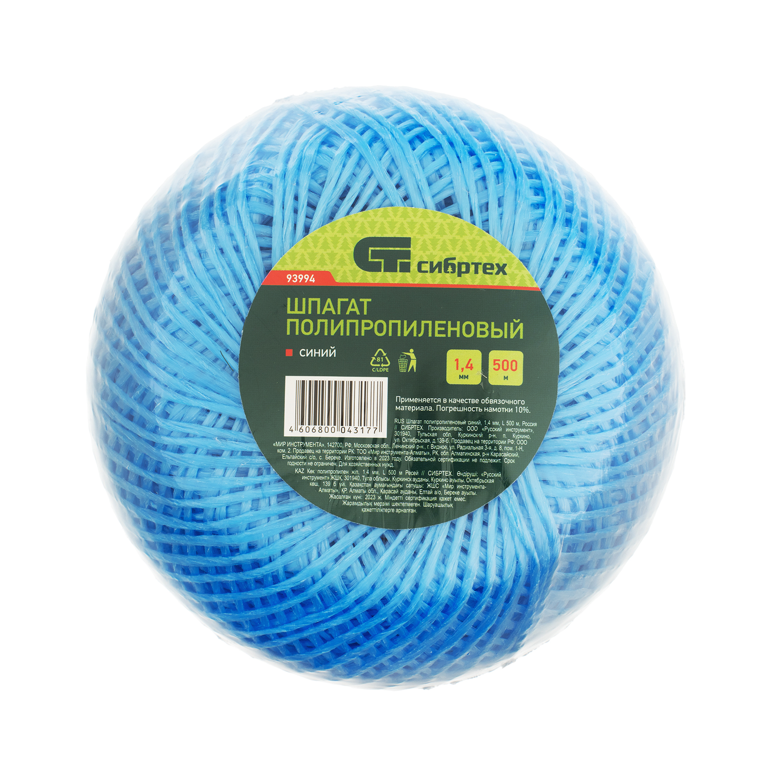Шпагат полипропиленовый синий, 1.4 мм, L 500 м, Сибртех в Екатеринбурге