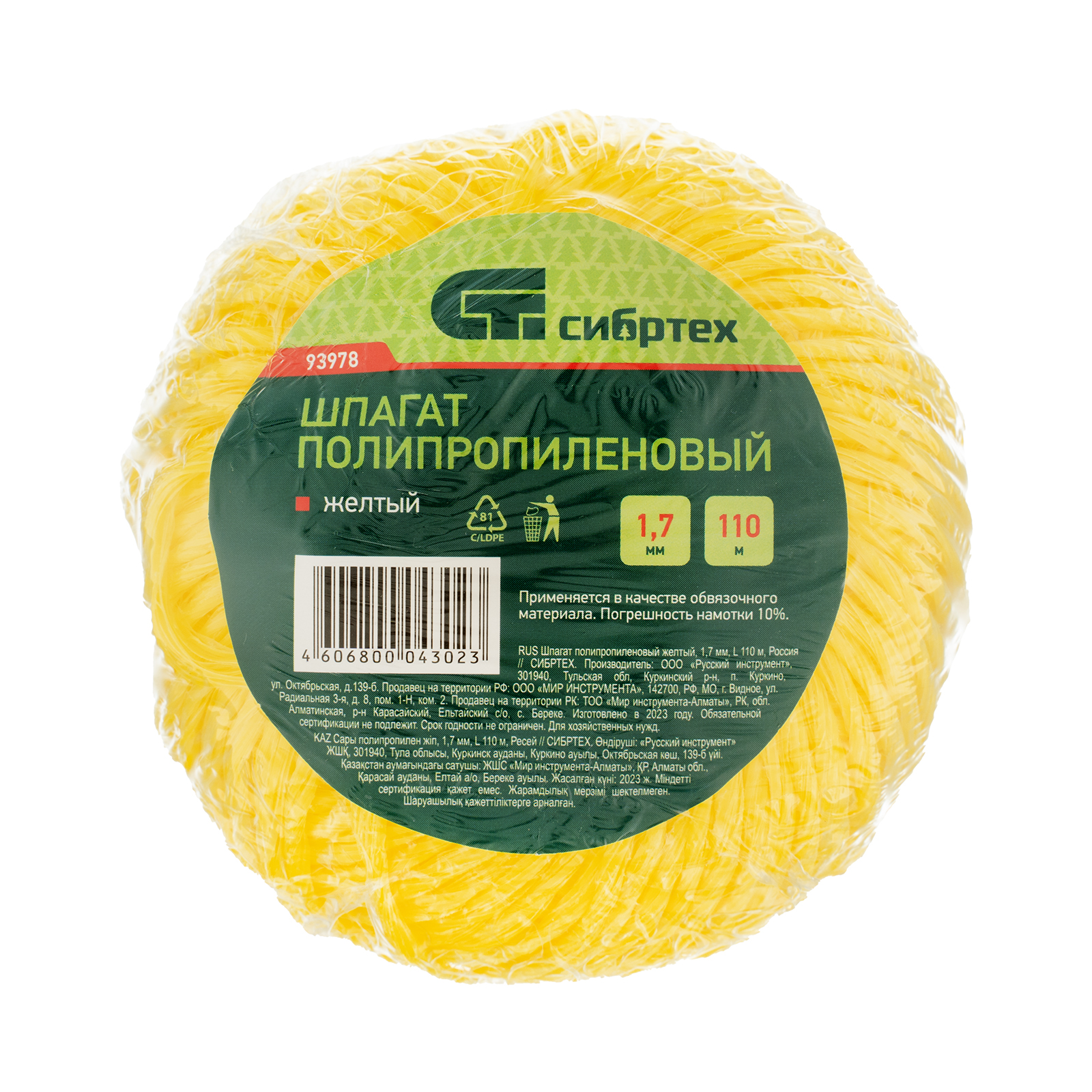 Шпагат полипропиленовый желтый, 1.7 мм, L 110 м, Сибртех в Екатеринбурге