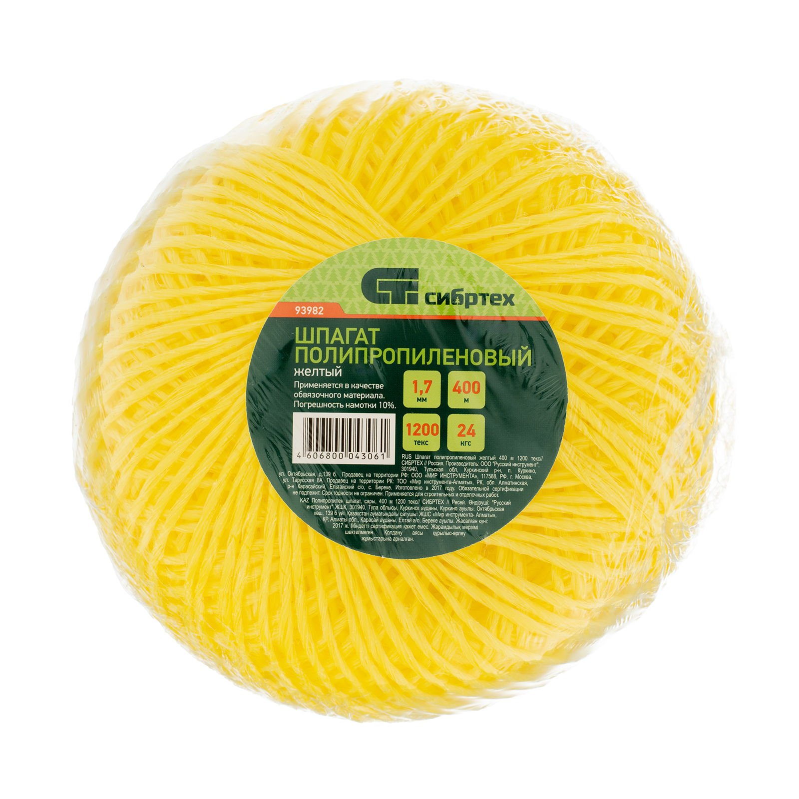 Шпагат полипропиленовый желтый, 1.7 мм, L400 м, Сибртех в Екатеринбурге
