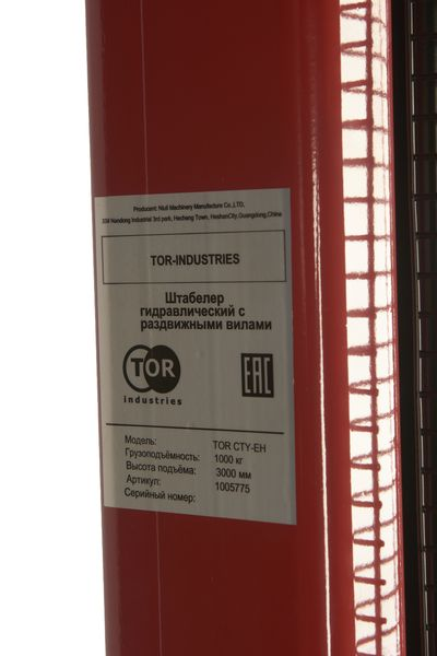Штабелер гидравлический 1,0 т 3,0 м TOR CTY-EH с раздвижными вилами в Екатеринбурге