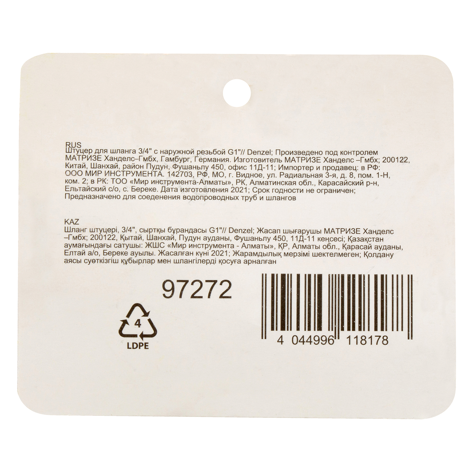 Штуцер для шланга 3/4" с наружной резьбой G1" Denzel в Екатеринбурге