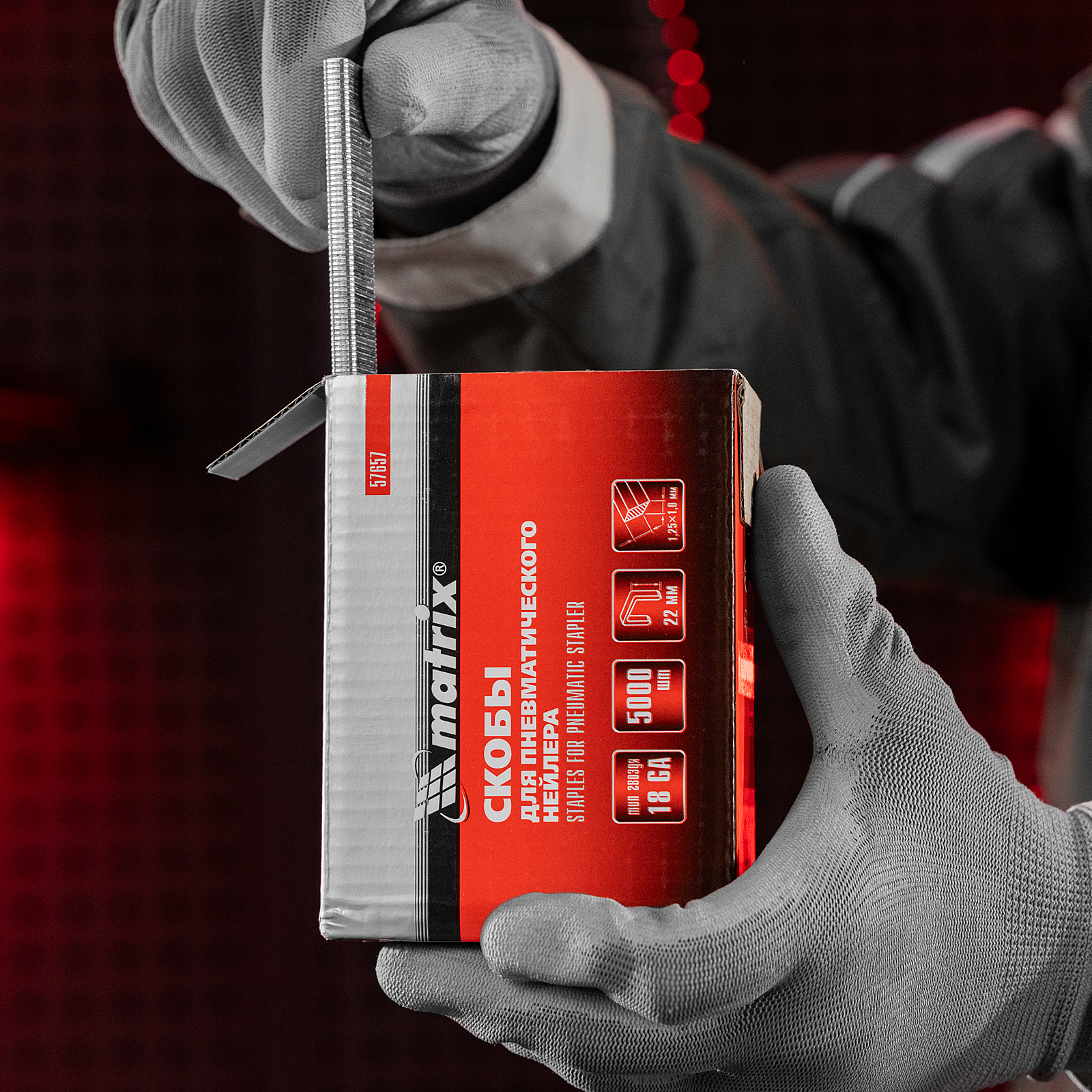 Скобы Matrix 57657 типа 18GA, сечением 1,25 х 1,0 мм, длиной 22 и шириной 5,7 мм, 5000 шт. в упаковке, — крепежные элементы для пневматических степлеров, использующиеся во время ремонтных и отделочных работ. С их помощью можно поменять мебельную обивку, скрепить деревянные каркасы, обшить и утеплить стены.