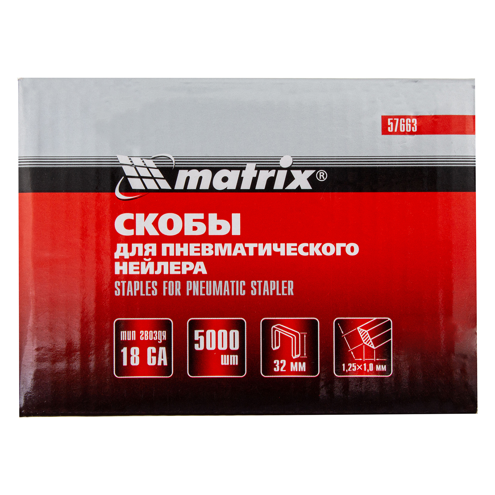Скобы для пневматического степлера 18GA, 1.25 х 1 мм длина 32 мм ширина 5,7 мм, 5000 шт Matrix в Екатеринбурге