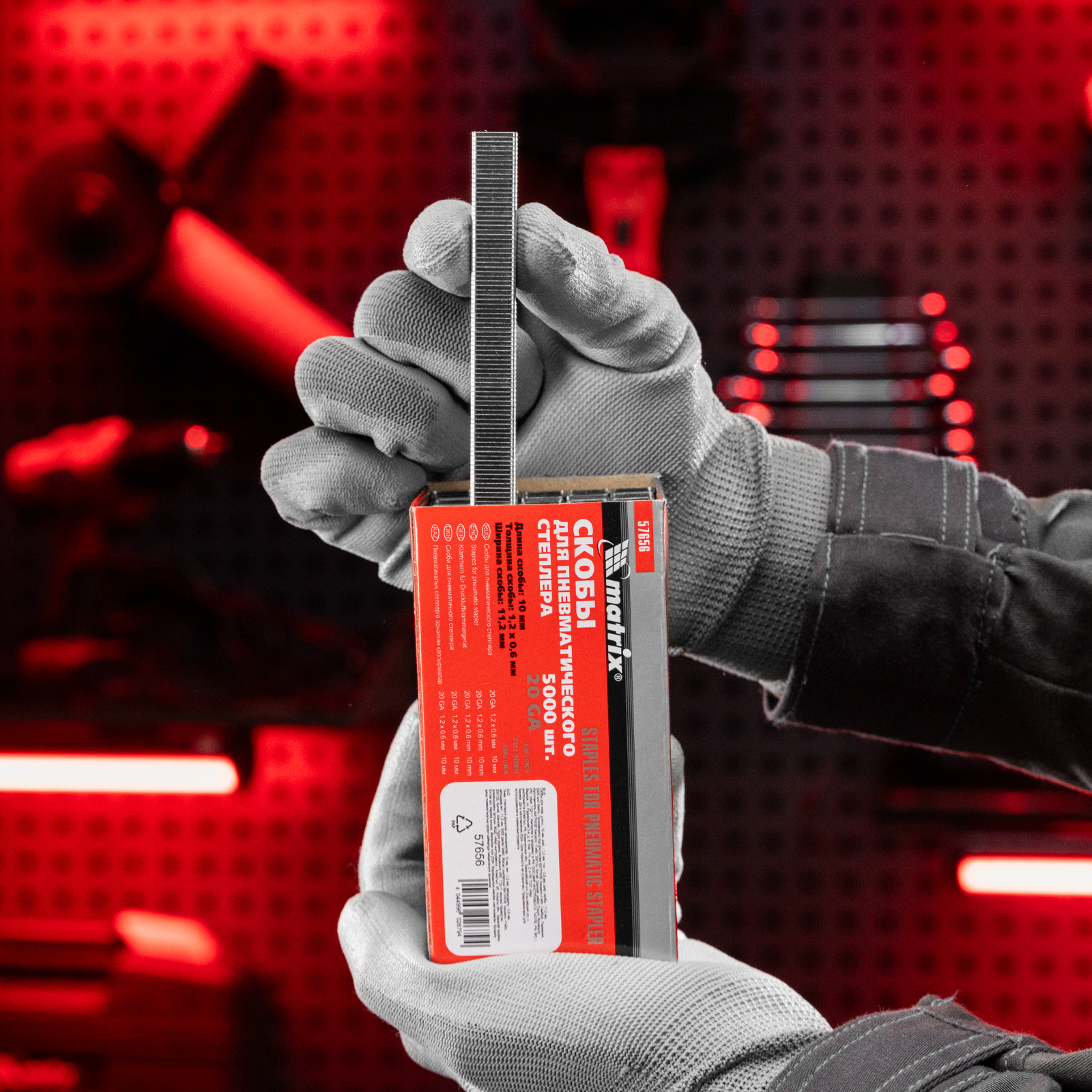 Скобы Matrix 57656 шириной 11,2 мм, 5000 шт. в упаковке, можно использовать с мебельными и строительными пневматическими степлерами, работающими с крепежом размером 10 х 1,2 х 0,6 мм. Они применяются для крепления плинтусов, тканей, пленки и других материалов к деревянным поверхностям.