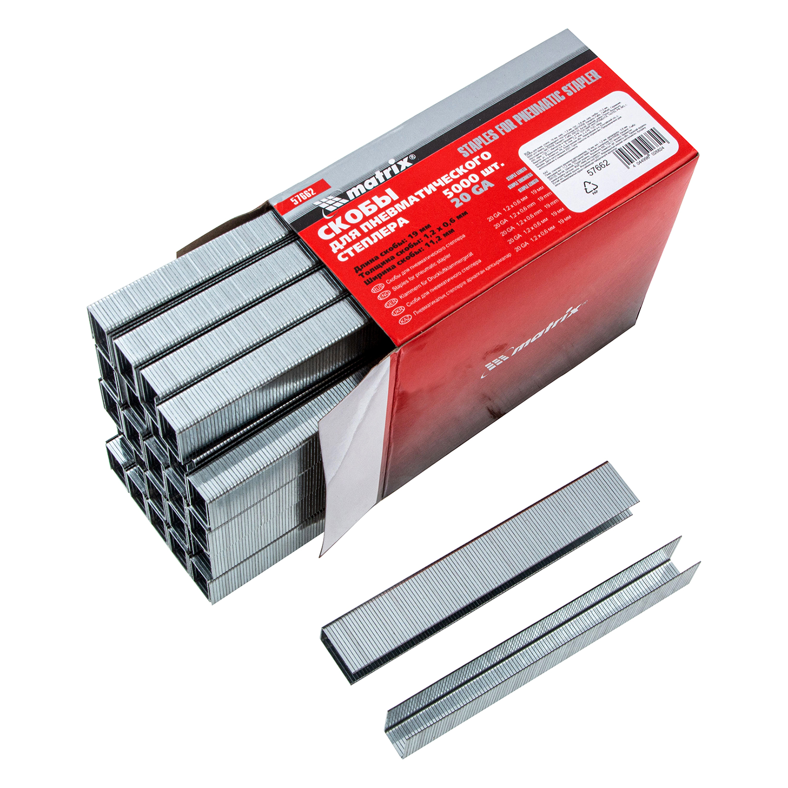 Скобы для пневматического степлера, 19 мм, ширина 1.2 мм, толщина 0.6 мм, ширина скобы 11.2 мм, 5000 шт Matrix в Екатеринбурге