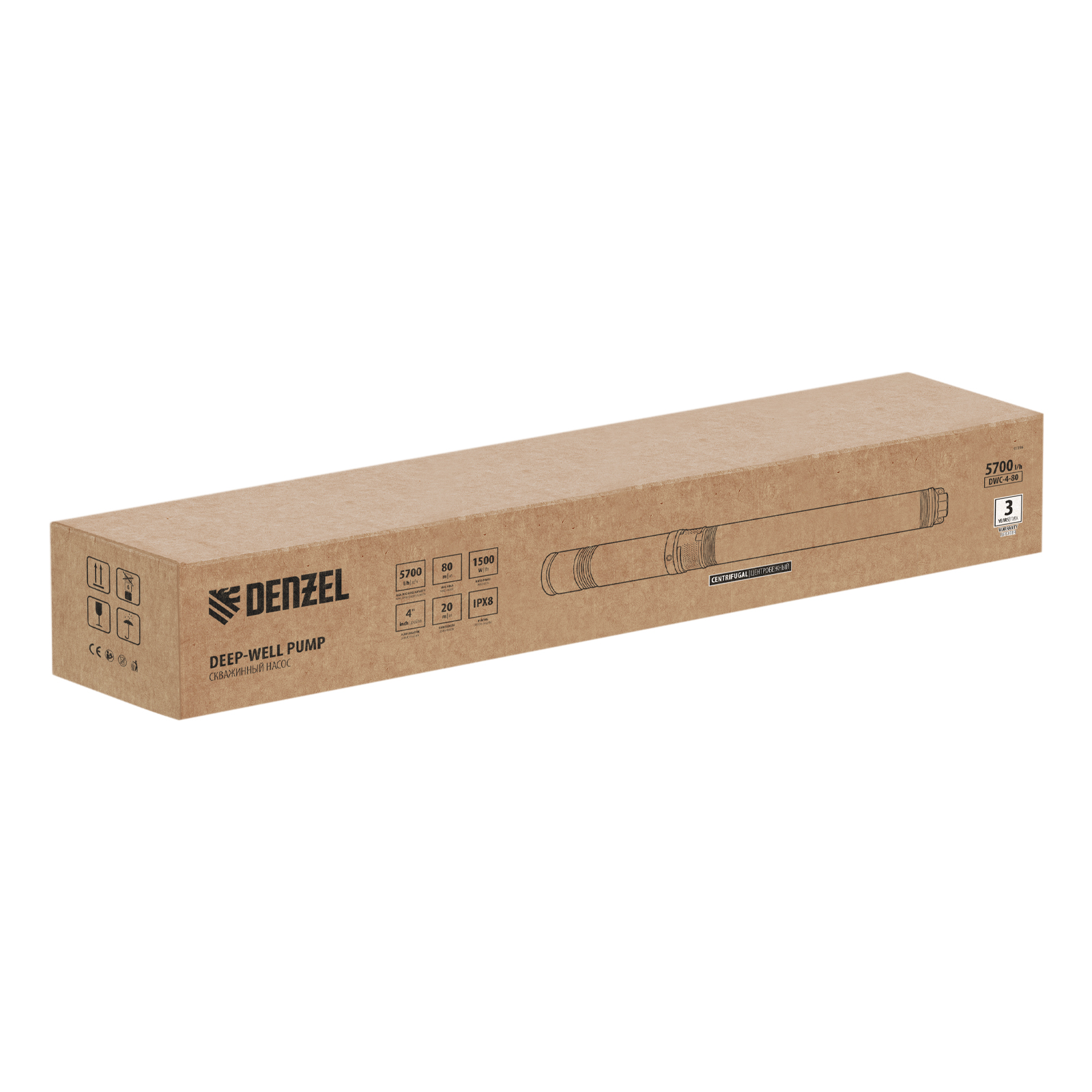 Скважинный насос DWC-4-80, центробежный, диаметр 4", 1500 Вт, 5700 л/ч, напор 80 м Denzel в Екатеринбурге
