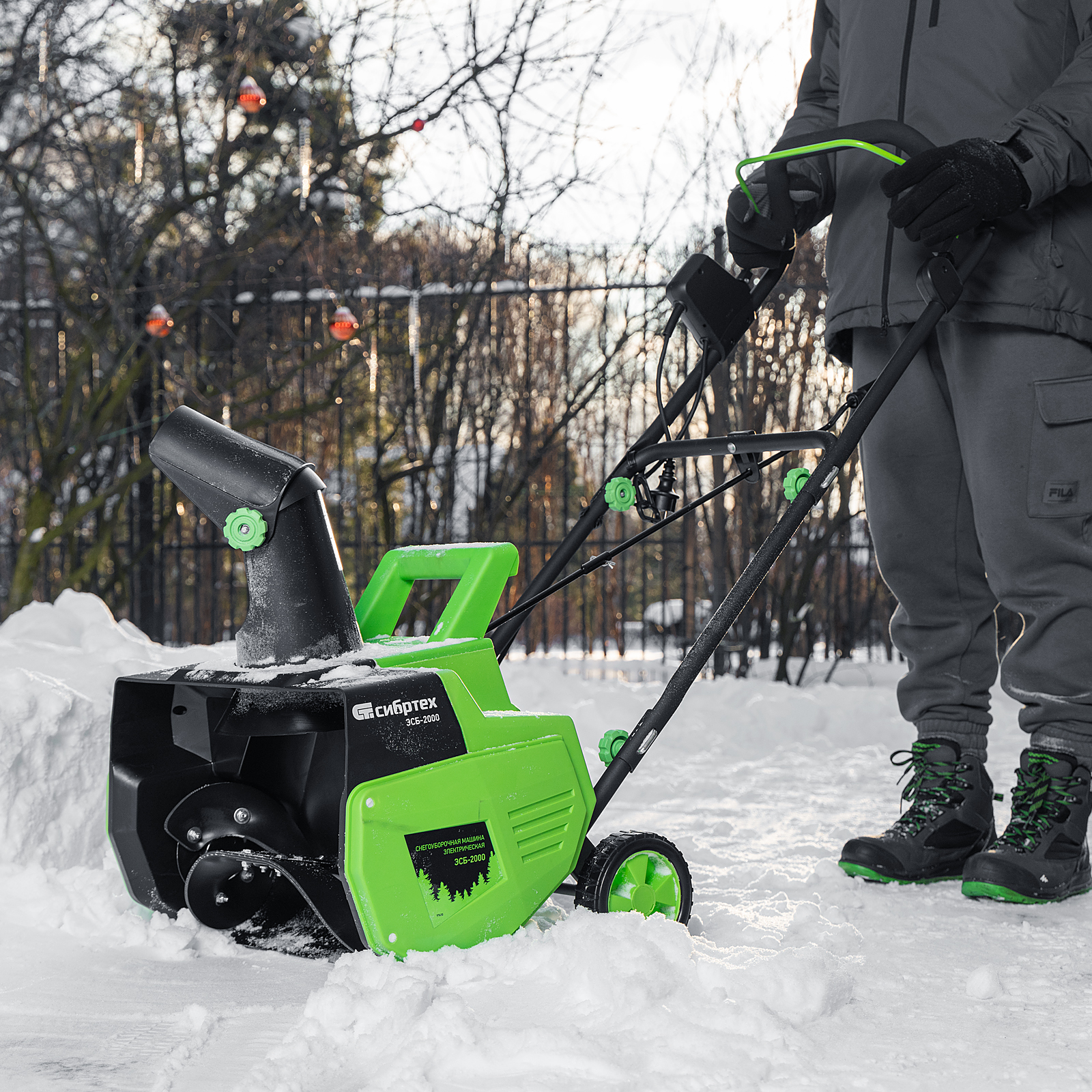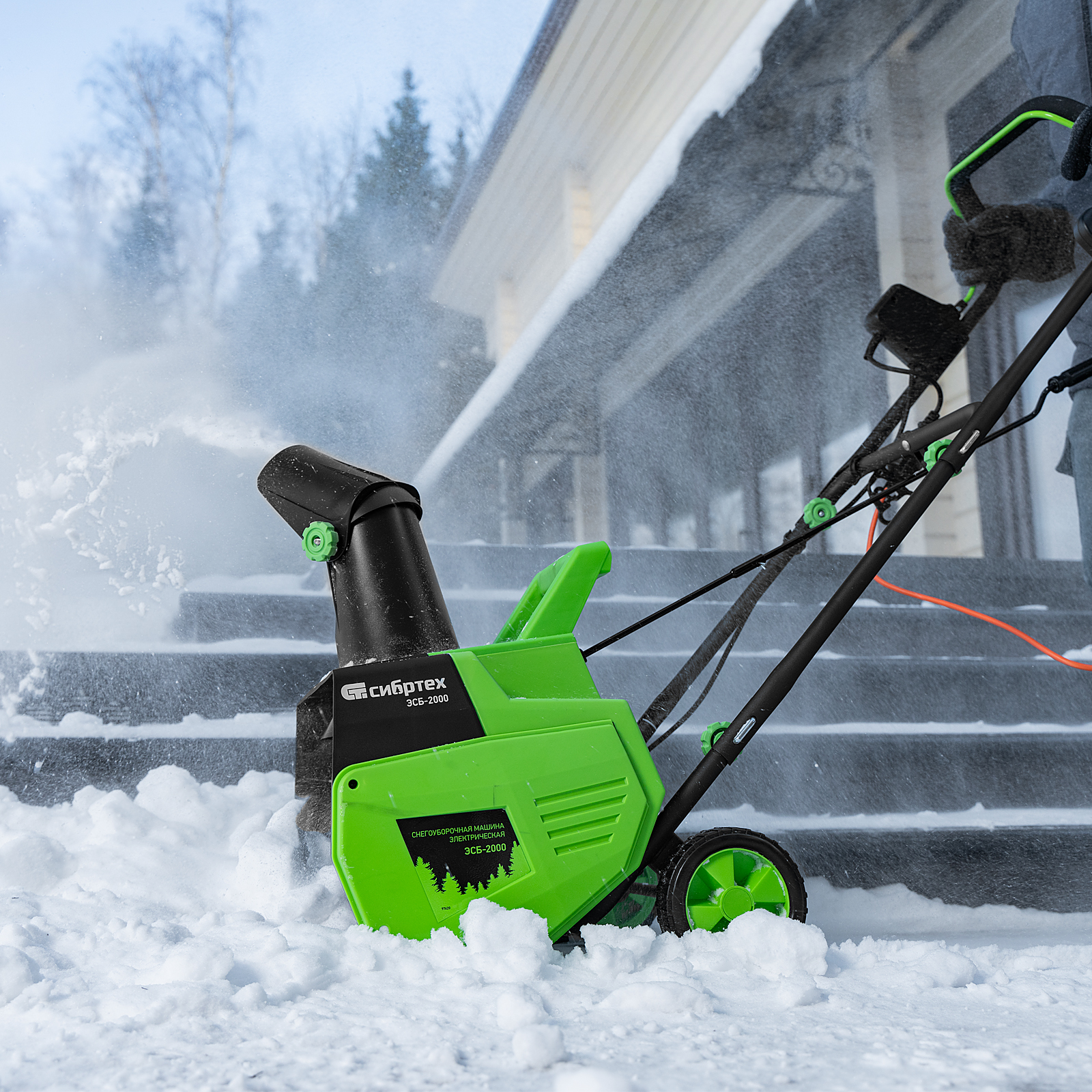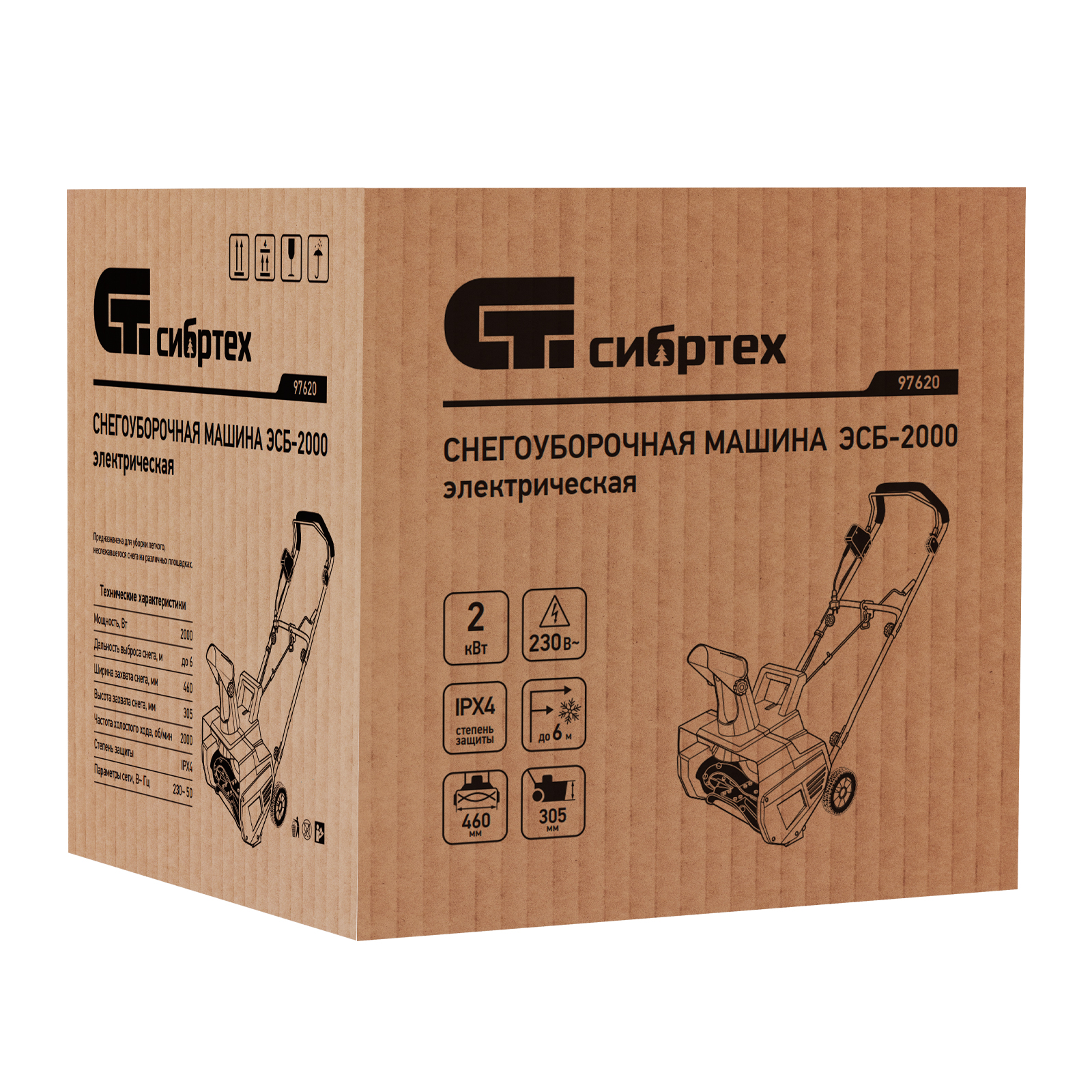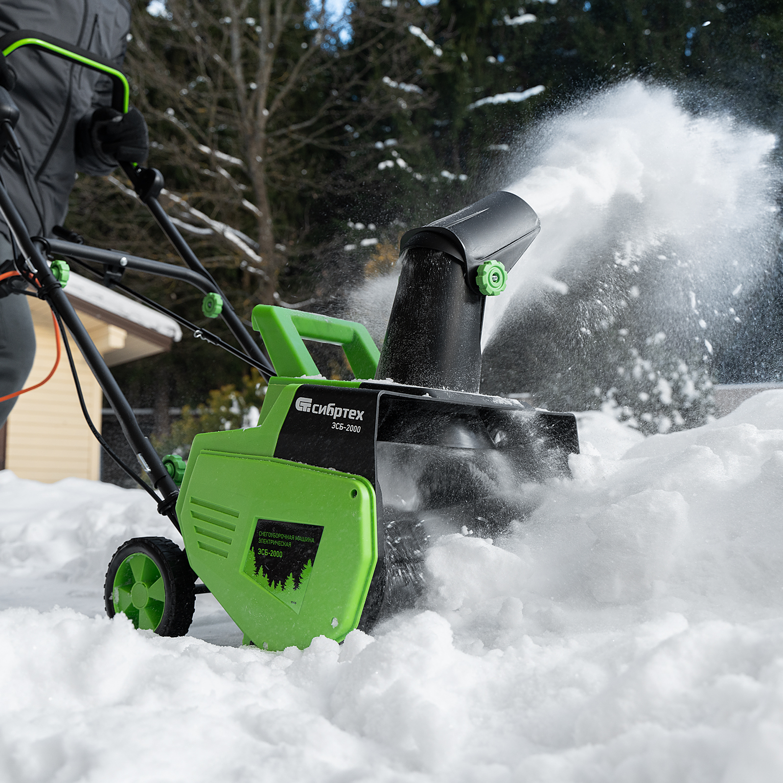 Электрическая снегоуборочная машина Сибртех ЭСБ-2000 97620 мощностью 2 кВт облегчит уборку территории после легкого снегопада. Работает от электрической сети, поэтому не производит шума и опасных выхлопов. Электродвигатель не требует сложного технического обслуживания.