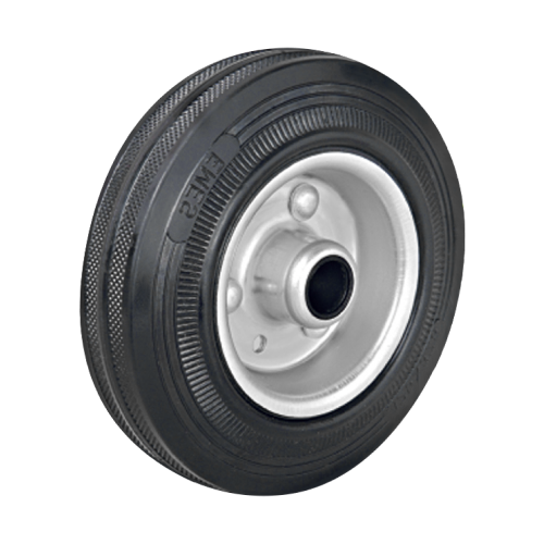 Грузоподъемность промышленного колеса SPR200 составляет 180 кг, диаметр — 200 мм. Контактный слой изготовлен из литой черной резины, обод — из оцинкованной стали. Модель подходит для установки на различное складское и строительное оборудование, контейнеры ТБО, может использоваться на поверхностях с уклонами и неровностями, во влажной среде.