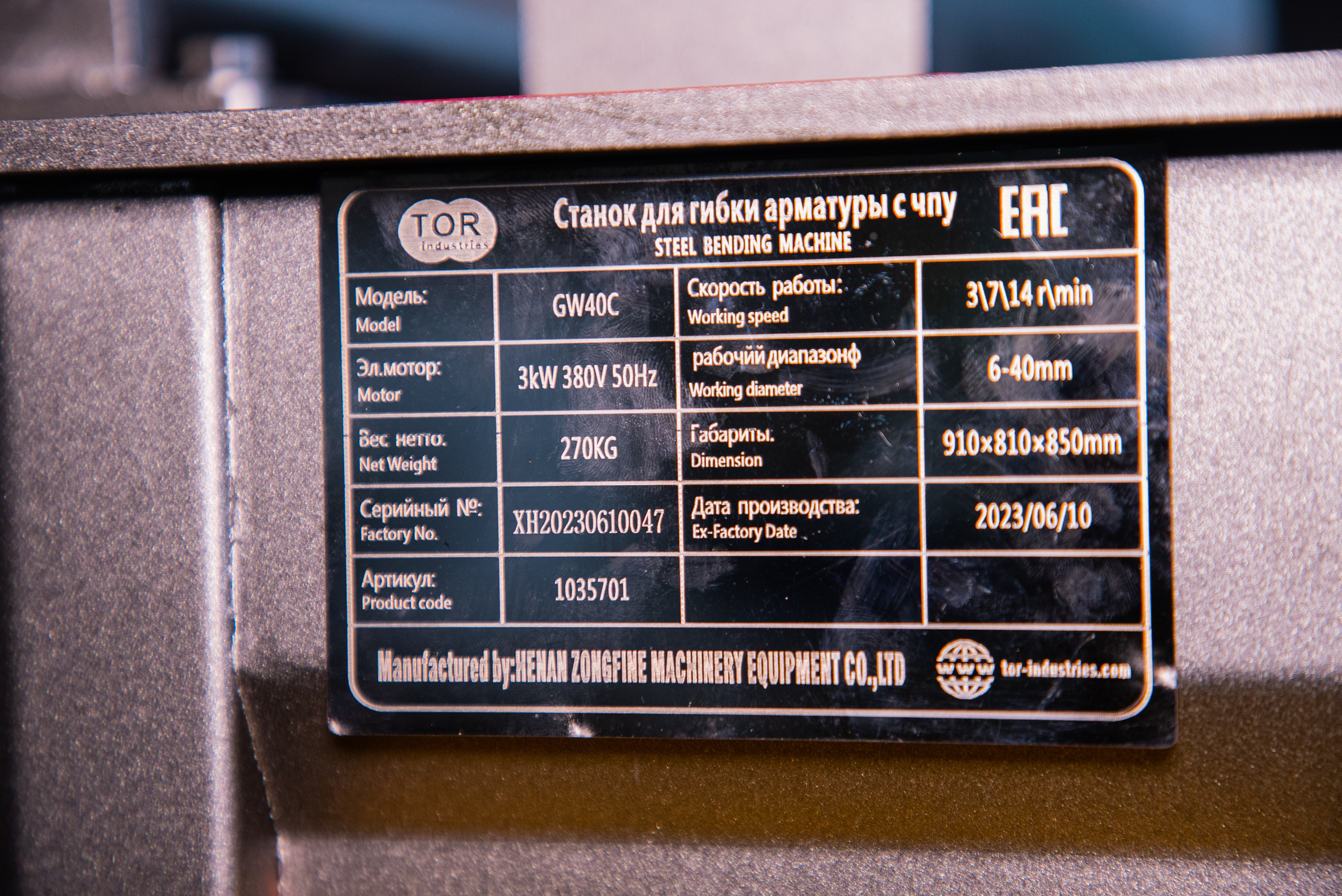 Станок для гибки арматуры 40/32мм 3кВт с ЧПУ TOR GW40С