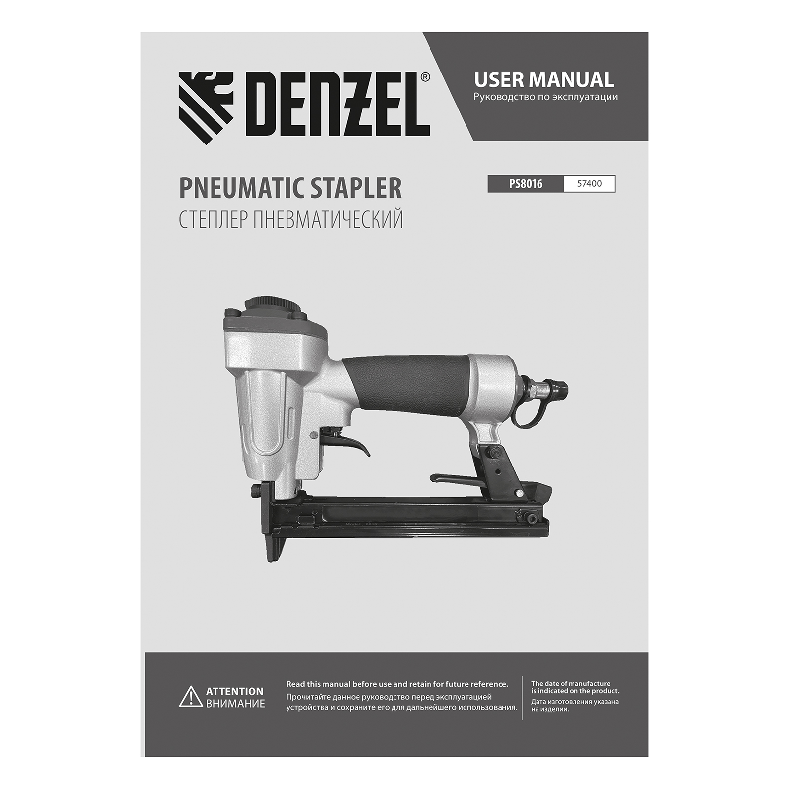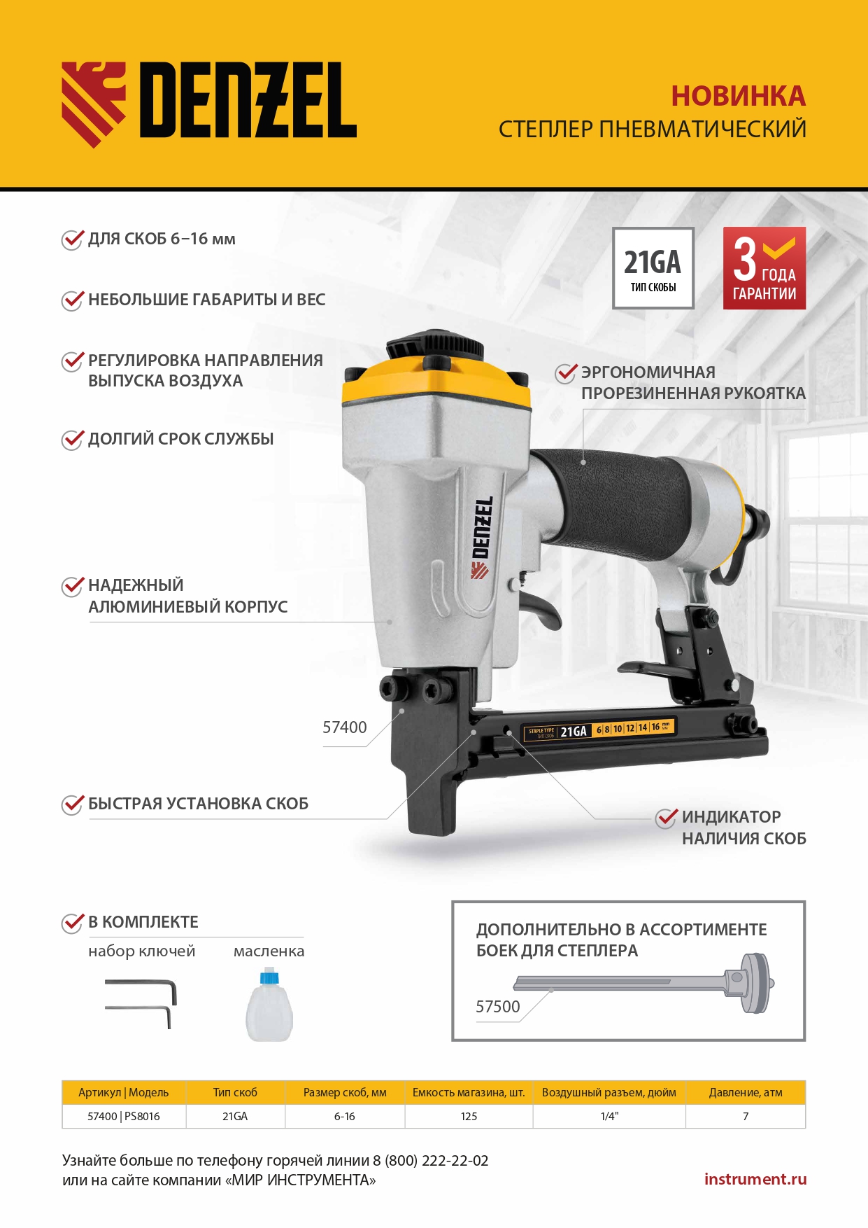 Степлер пневматический PS8016 для прямоугольных скоб 21GA от 6 до 16 мм Denzel в Екатеринбурге