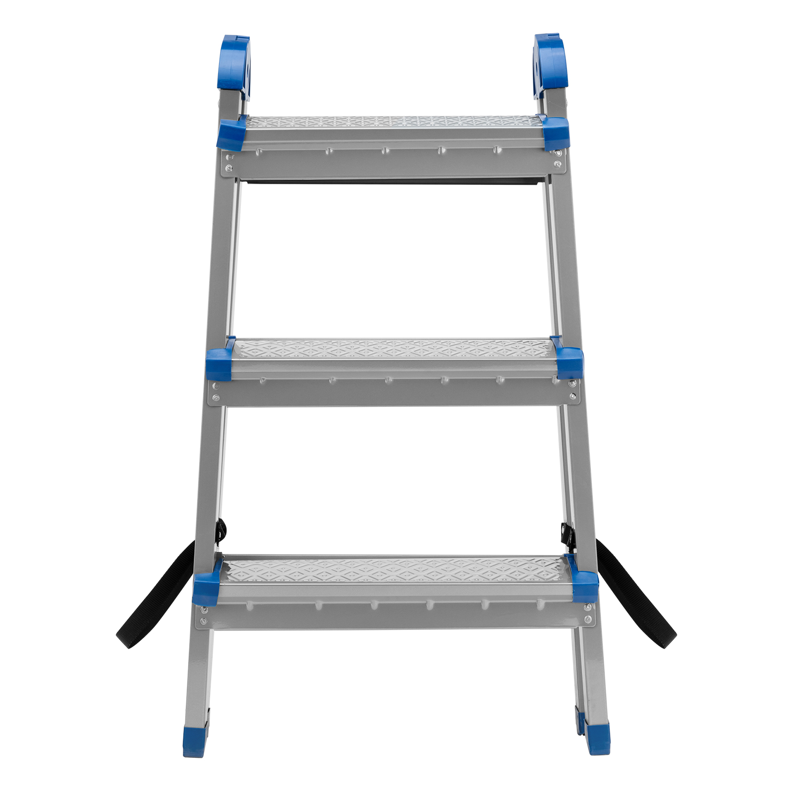 - Удобная транспортировка — стремянка весом 4 кг легко складывается, ее размеры в сложенном состоянии 735 х 435 х 160 мм.