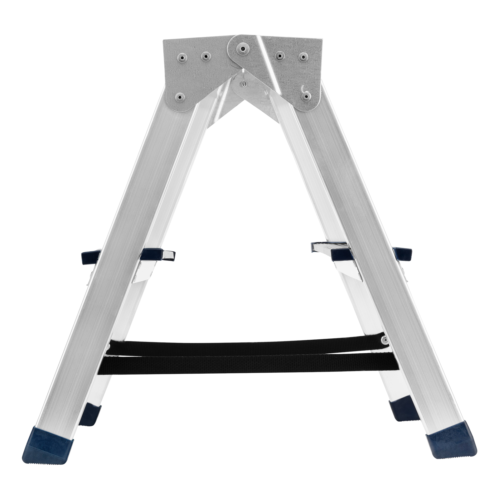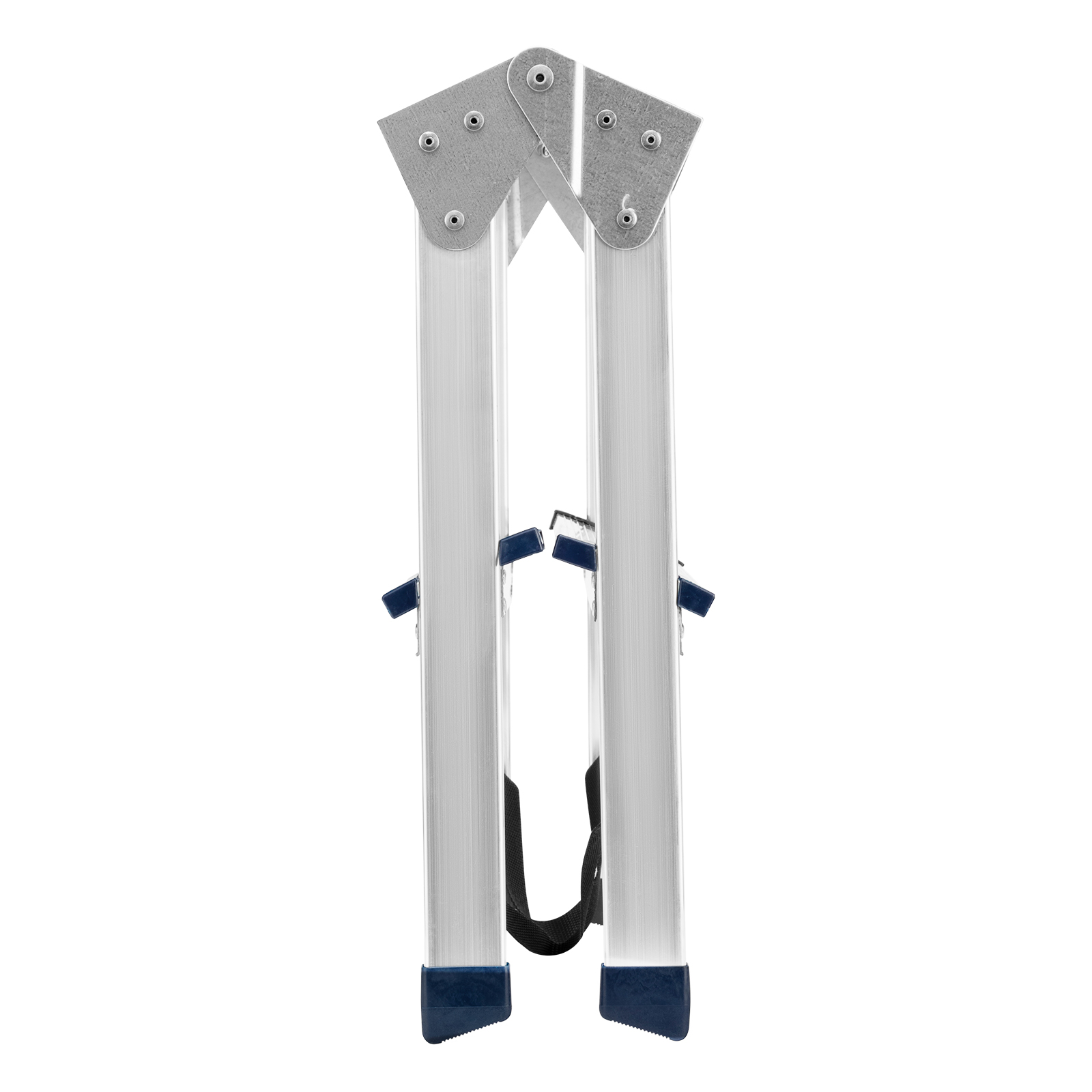 - Продуманная конструкция — нейлоновые страховочные стяжки повышают надежность фиксации стремянки в рабочем положении.