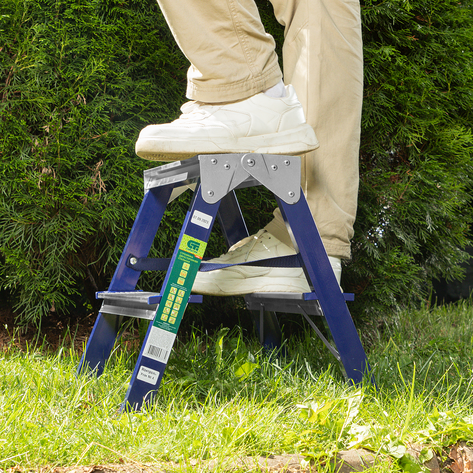 Стремянка двусторонняя 2 ступени, стальная, Сибртех в Екатеринбурге