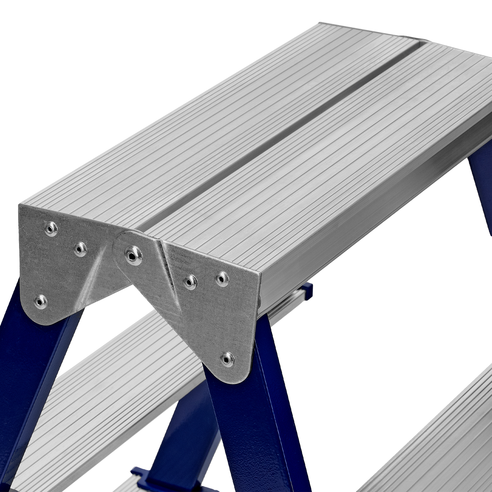- Безопасность пользователя — широкие алюминиевые ступени не прогибаются, их рифленая поверхность не дает поскользнуться.