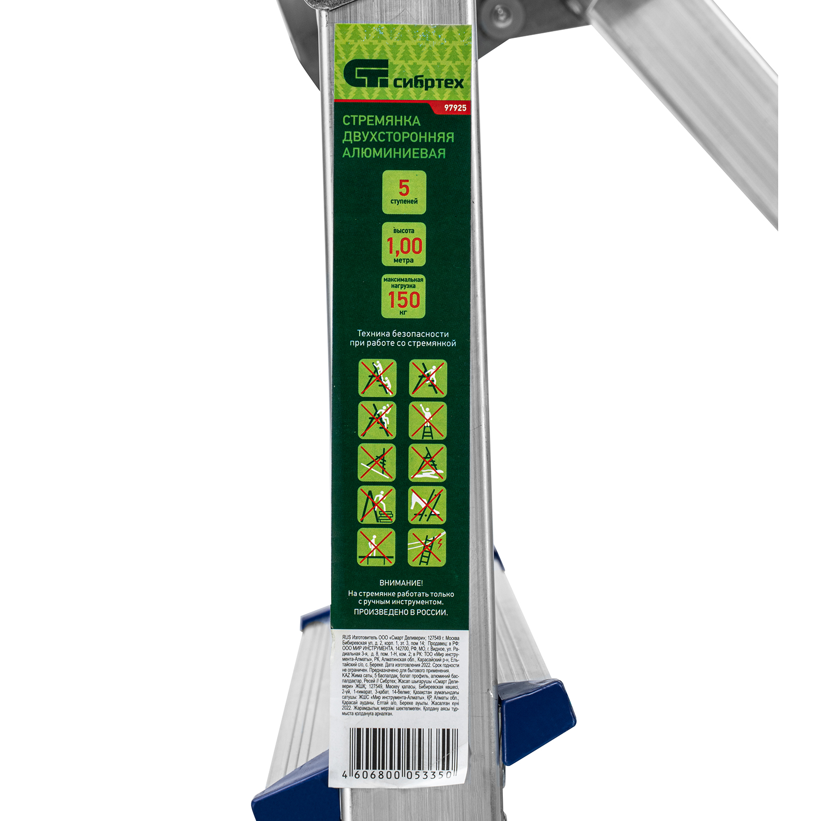 Стремянка двусторонняя 5 ступеней, алюминиевая, Сибртех в Екатеринбурге