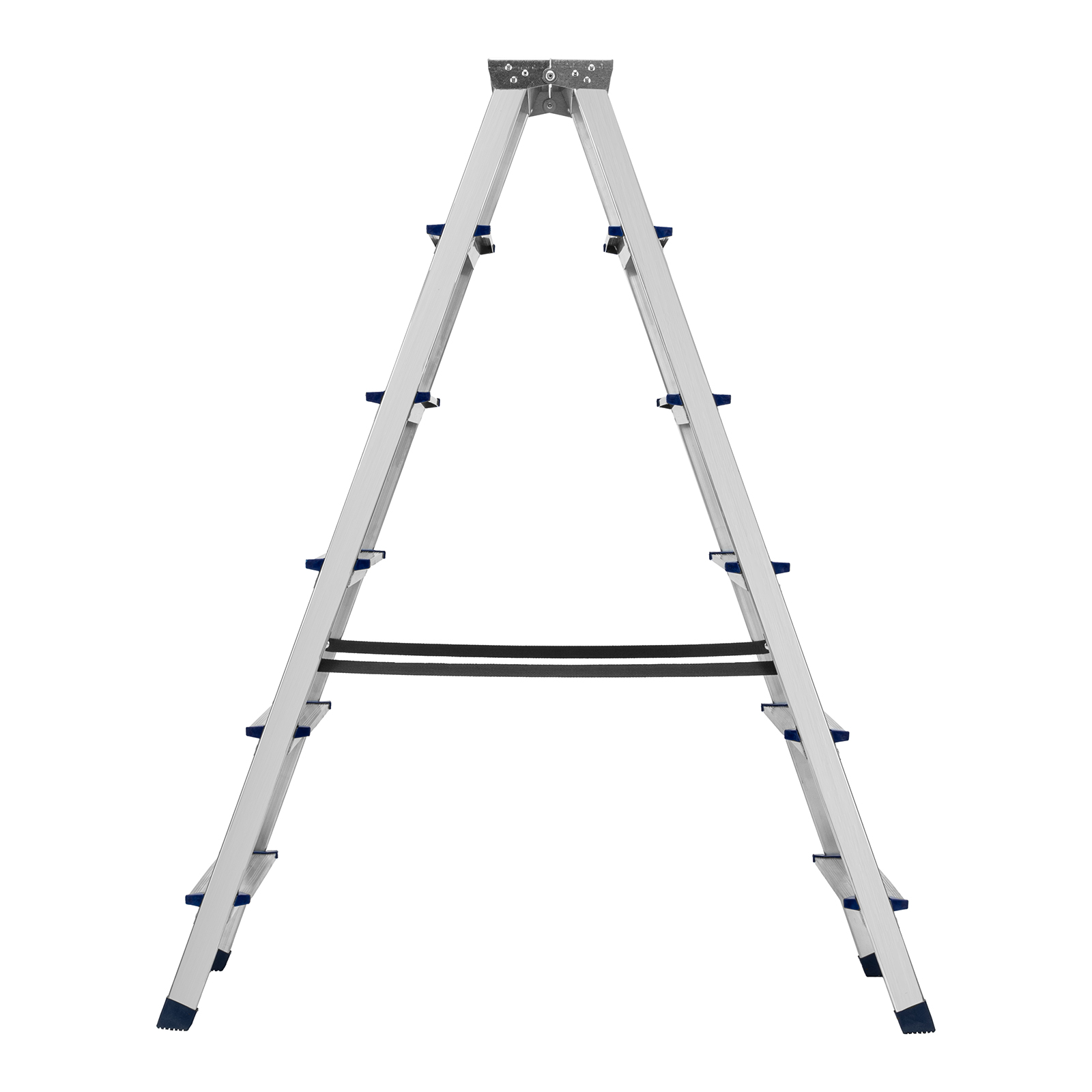 - Продуманная конструкция — нейлоновые страховочные стяжки повышают надежность фиксации стремянки в рабочем положении.