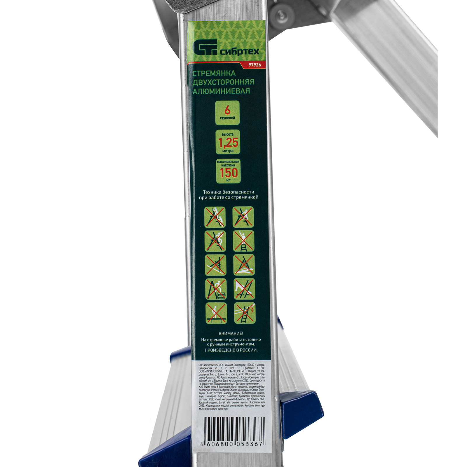 Стремянка двусторонняя 6 ступеней, алюминиевая, Сибртех в Екатеринбурге