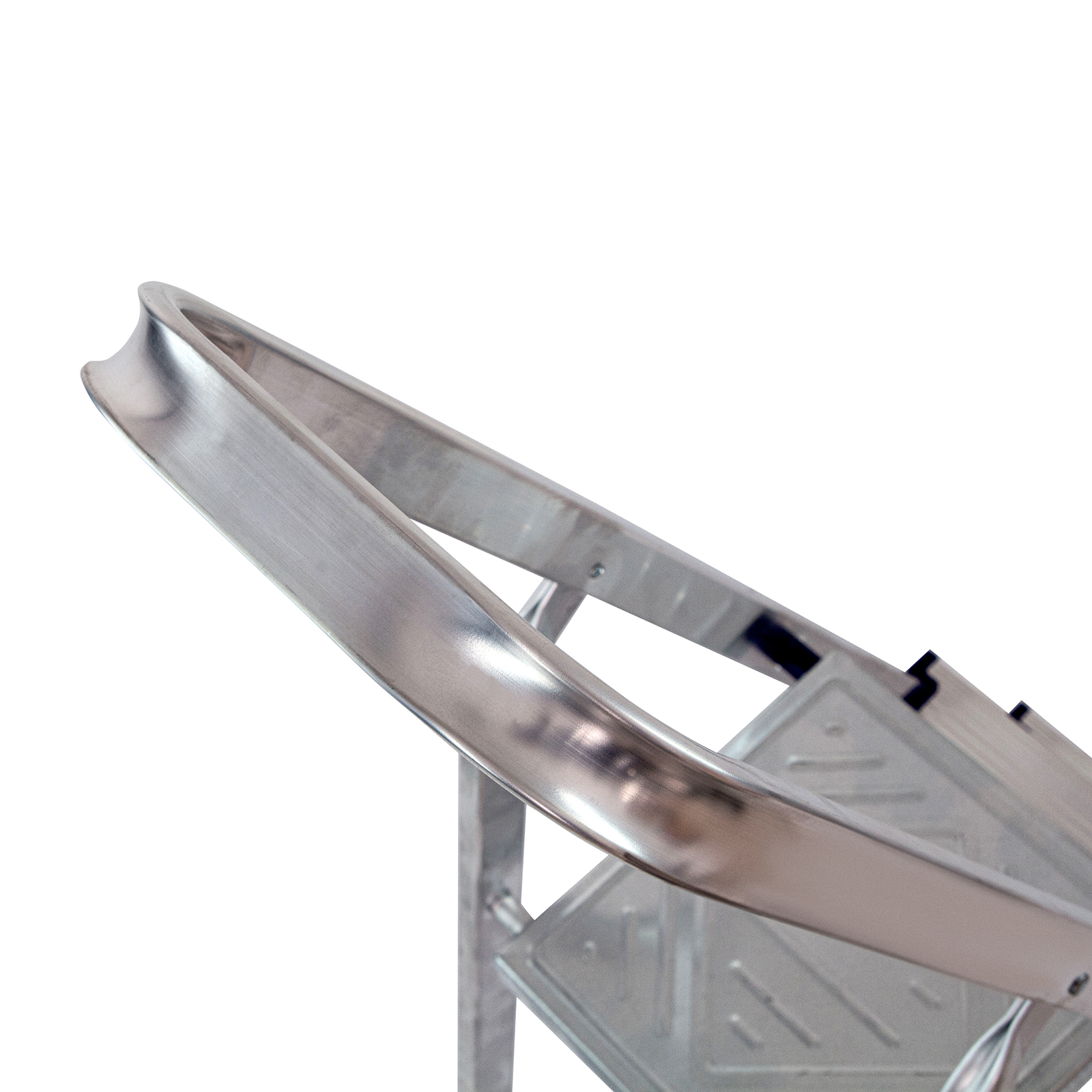 - Продуманная конструкция — стальная рабочая площадка с зацепами надежно фиксирует стремянку в разложенном положении.