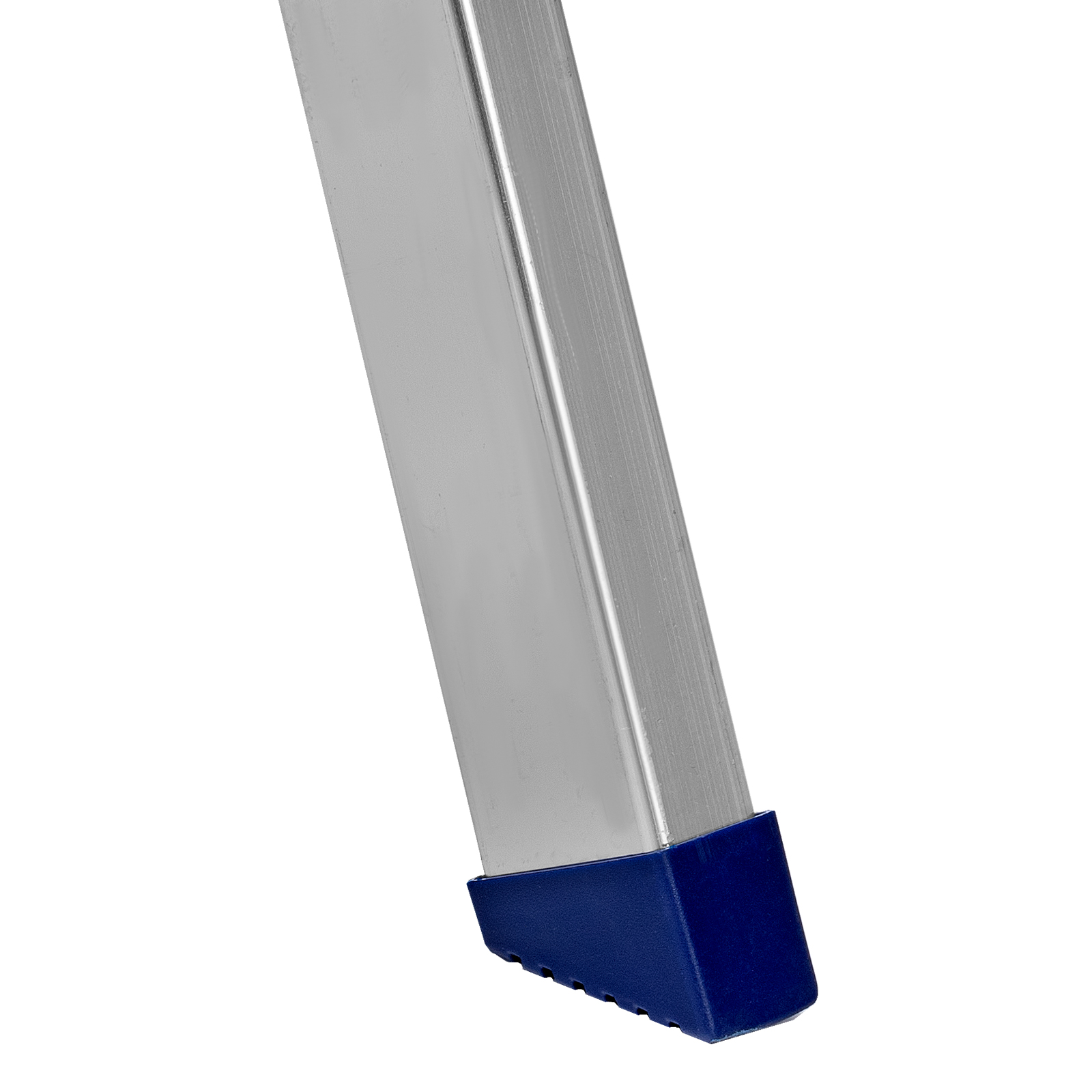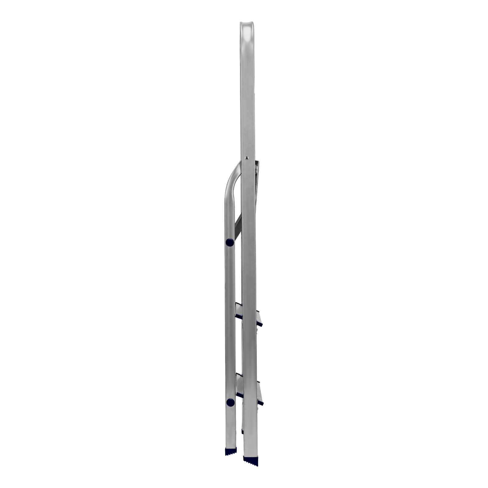 - Надежность — рама из прямоугольного алюминиевого профиля выдерживает нагрузку до 150 кг, широкие ступени закреплены заклепками.