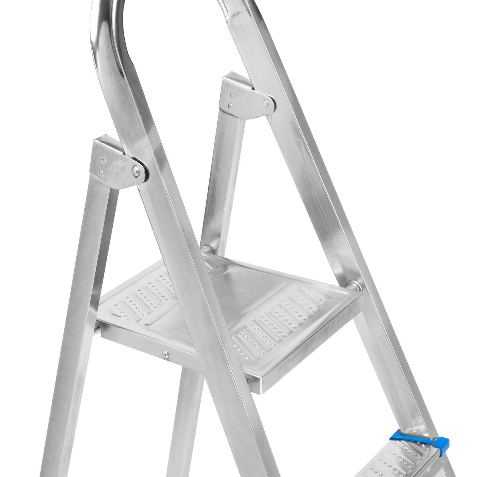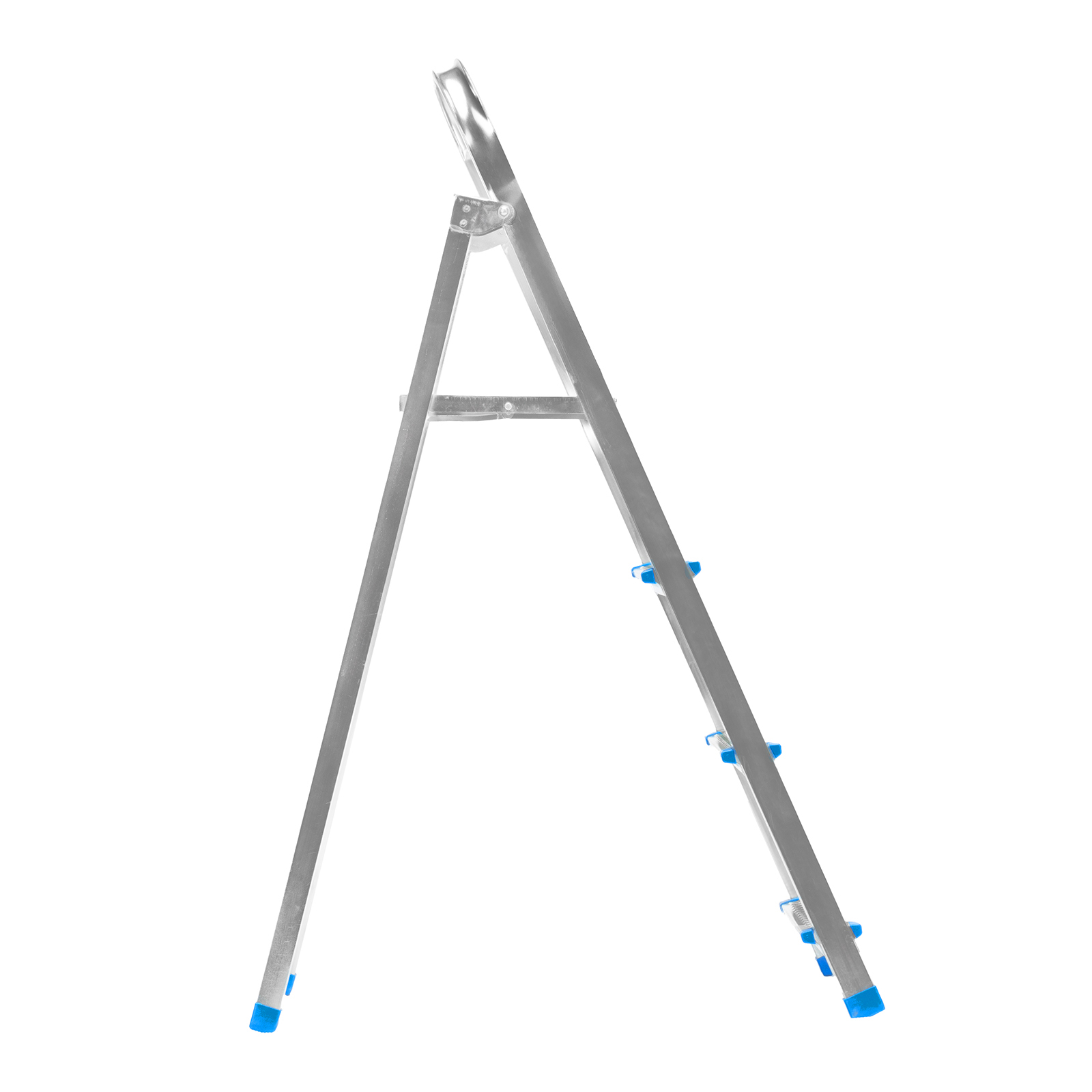 - Простая установка — на верхней площадке предусмотрены специальные зацепы для фиксации стремянки в разложенном состоянии.