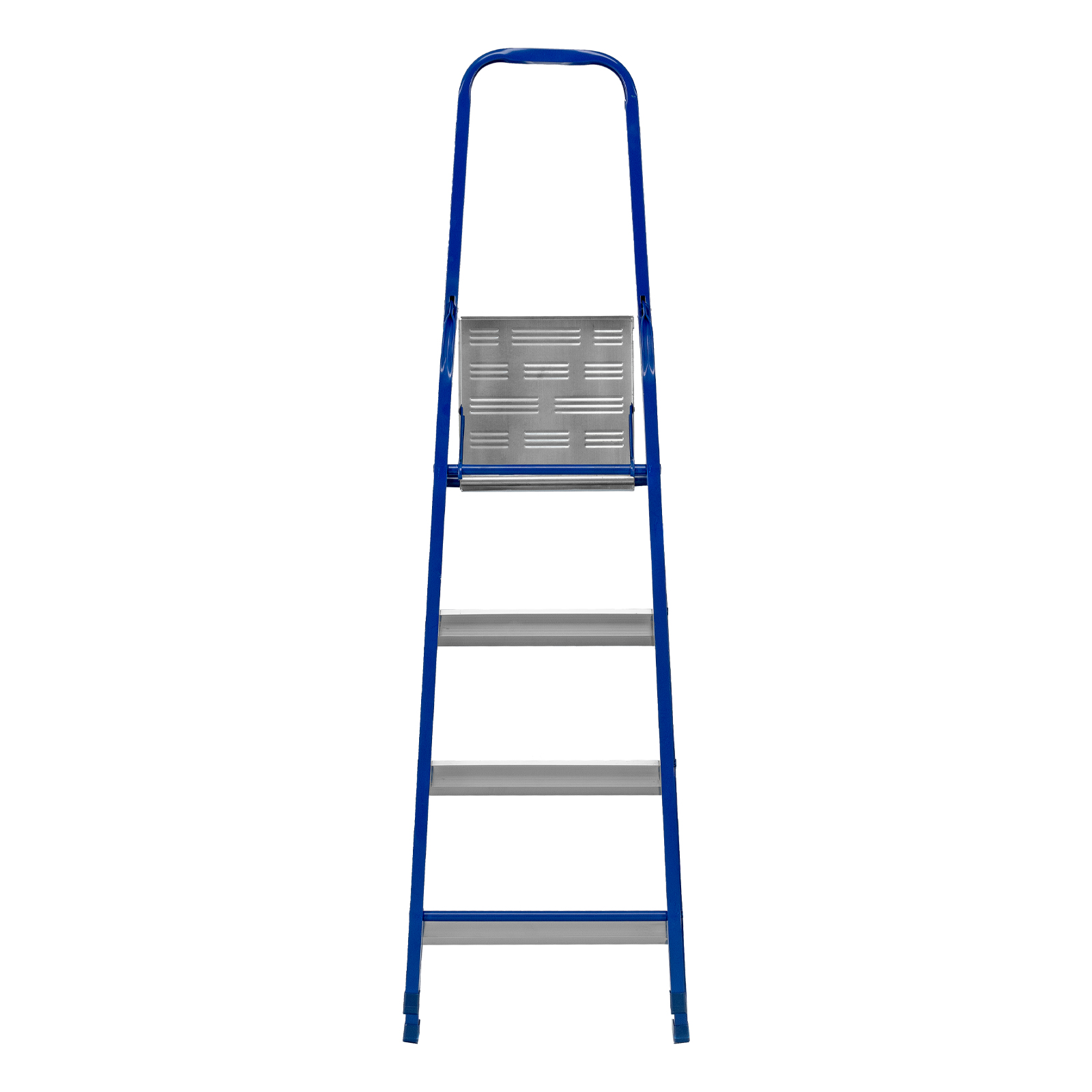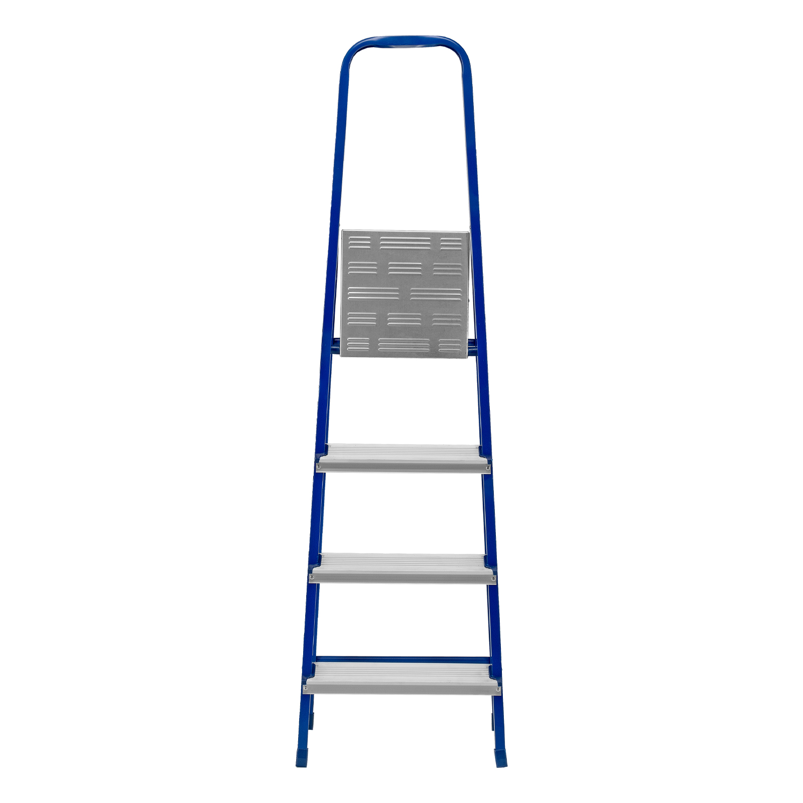 Стремянка Сибртех 97954 со стальным профилем и 4 ступенями, 3 из которых алюминиевые, упрощает доступ к предметам, расположенным на антресолях, шкафах, высоких полках. Также будет полезна для проведения отделочных и монтажных работ. Лестница обладает высокой прочностью при весе 5,2 кг и выдерживает нагрузку до 150 кг. Площадка находится на высоте 79,4 см от опорной поверхности, рабочая высота стремянки составляет 279,4 см (при среднем росте пользователя 170 см).