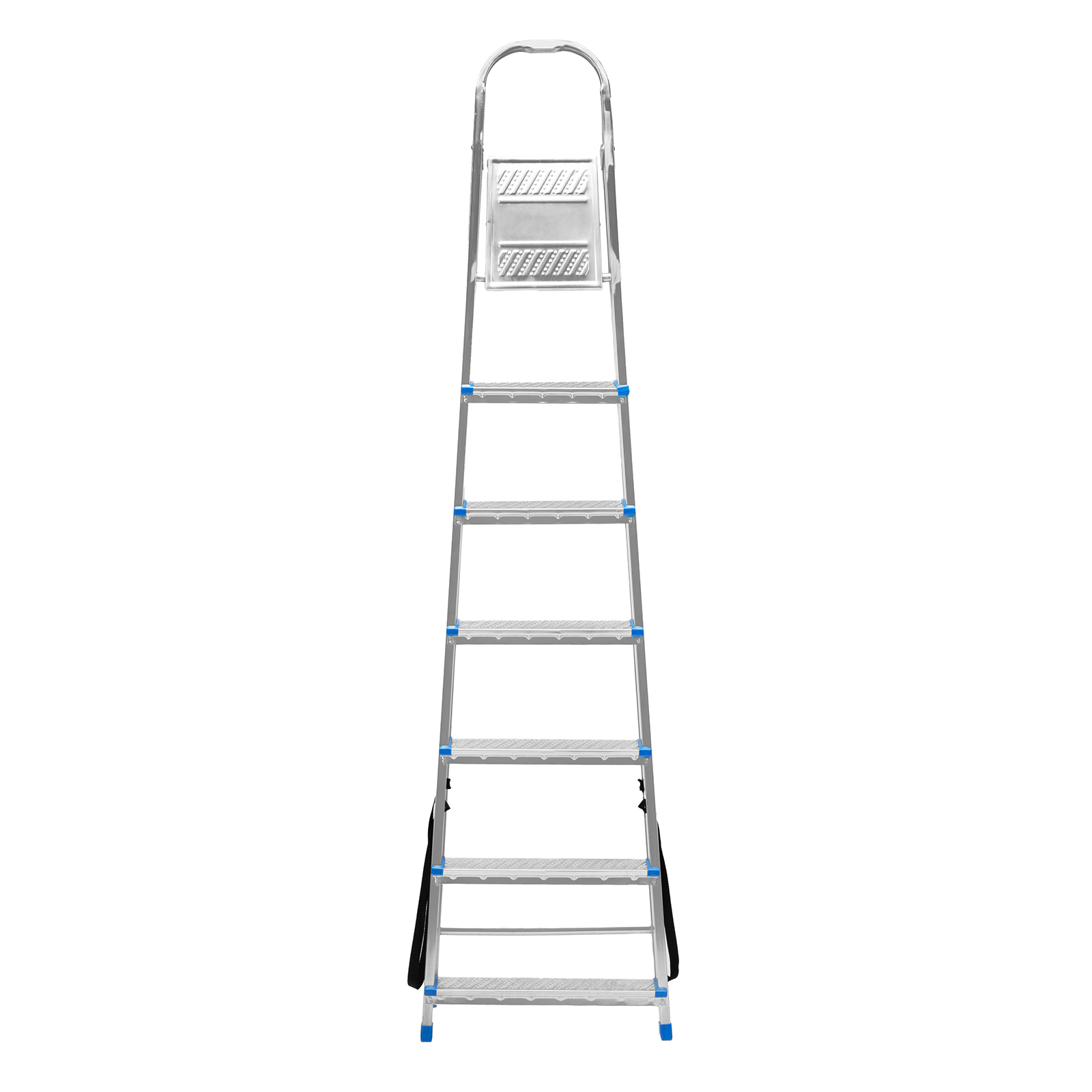 Стальная оцинкованная стремянка Сибртех 97839 с 7 ступенями позволяет повесить полку, картину или шкафчик, достать нужный предмет и решить другие задачи, для которых требуется доступ к предметам на высоте. Рама и ступени из стального профиля выдерживают вес до 120 кг. Расстояние от опорной поверхности до площадки составляет 143,5 см, при среднем росте пользователя 170 см рабочая высота лестницы — 343,5 см. Необходимо соблюдать технику безопасности: размещать стремянку только на ровной плоскости и не использовать ее для работы с дрелью, шуруповертом и другим электроинструментом.