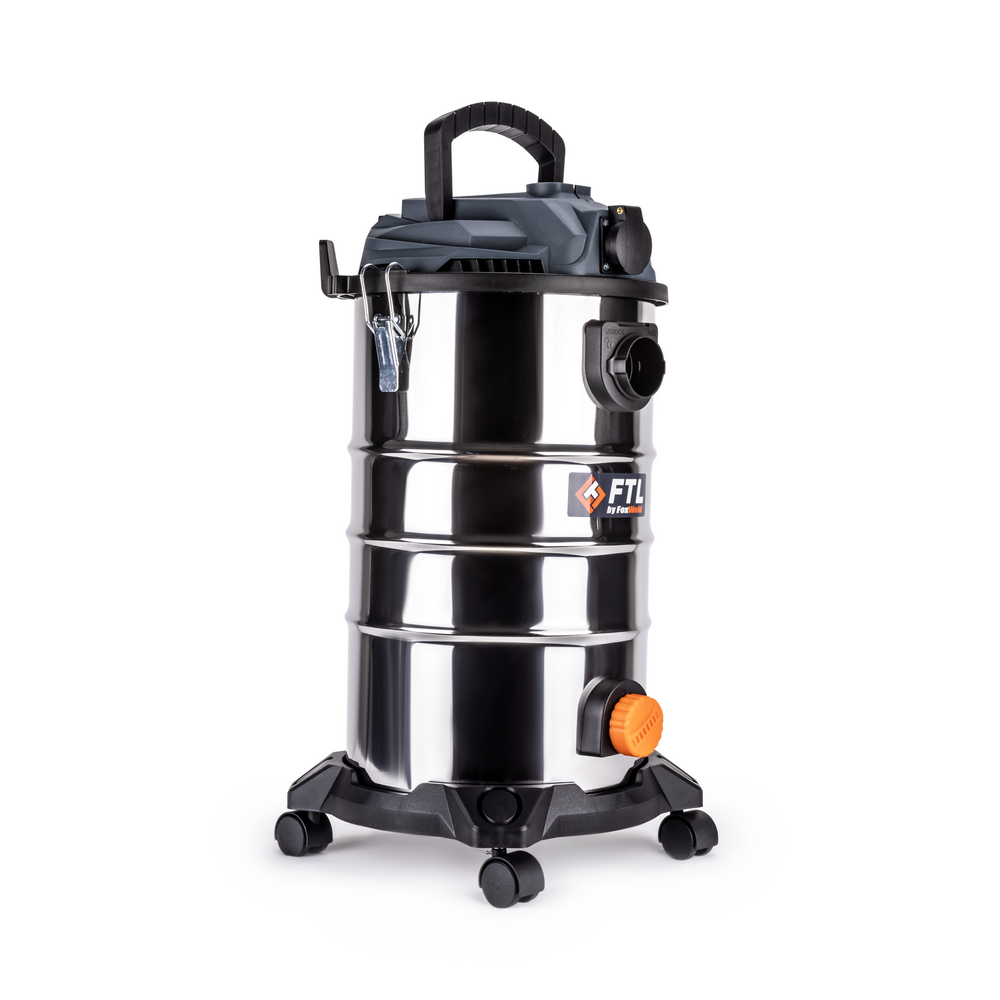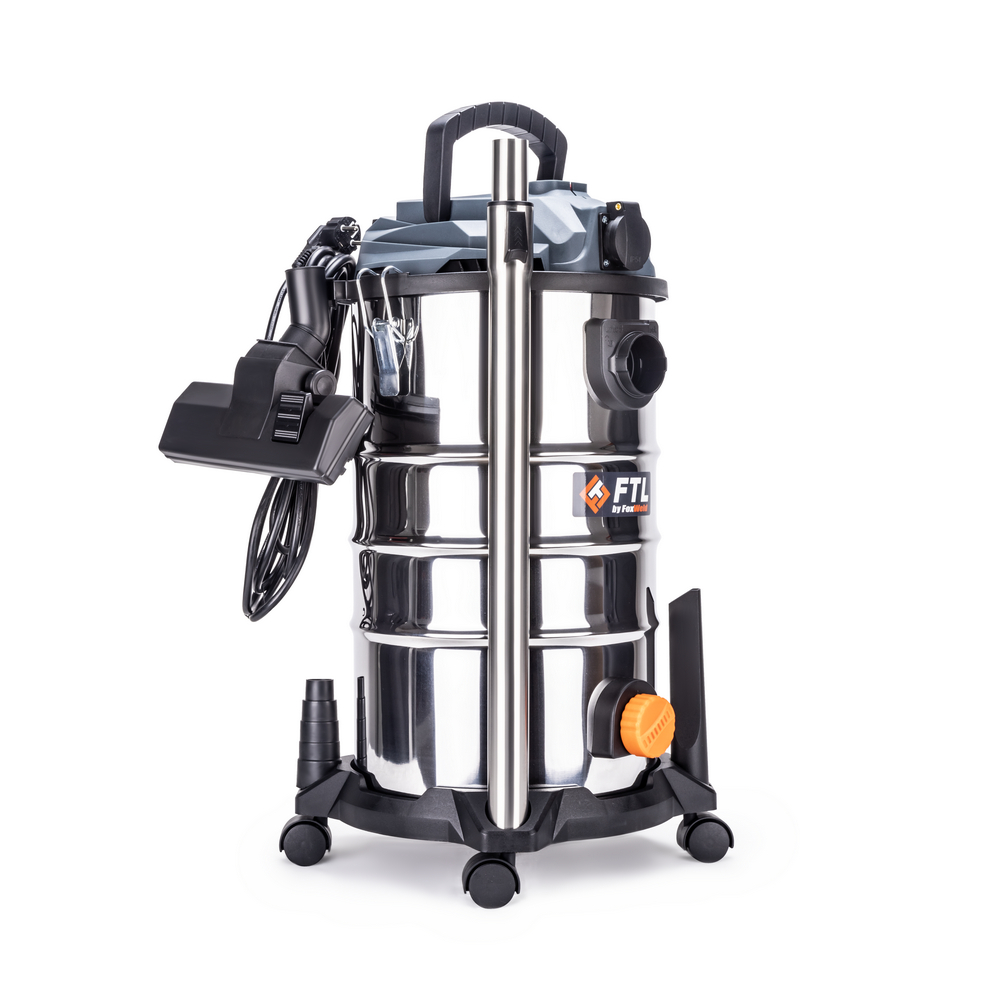 Строительный пылесос FTL VC 30 предназначен для уборки бытовых и рабочих помещений от строительной пыли и мусора, в том числе после проведения ремонтных и отделочных работ. Полноценный водопылесос с автоматической отсечкой всасывания и дренажной пробкой. 3 ступени фильтрации + возможность установки дополнительного мешка для сухой уборки. FTL VC 30 - компактный, малошумный, мобильный пылесос, идеален для коммерческого и промышленного применения. На модели VC 30 предусмотрена встроенная розетка для подключения электроинструмента.РОЗЕТКА СИНХРО: Строительный пылесос оборудован специальной розеткой «Синхро». После запуска подключённого инструмента (УШМ, перфоратор и т.д.) пылесос автоматически включается в режиме всасывания, что значительно сокращает время уборки помещения после окончания рабочего процесса.СБОР НЕГОРЮЧЕЙ ЖИДКОСТИ: Специальная функция сбора жидкости предназначена для эффективной уборки растворов, суспензий и воды с любой поверхности.ФУНКЦИЯ ОБДУВА: Функция обдува позволяет очистить рабочее место и поверхности от опилок, стружки, строительной пыли, сдуть листву с дорожек, прочистить водосток или канализацию.КОНТРОЛЬ ЗАПОЛНЕНИЯ КОНТЕЙНЕРА: На определённом уровне заполнения бака происходит автоматическая остановка всасывания для предотвращения попадания жидкости, грязи, пыли и другого мусора в двигатель пылесоса.КРОНШТЕЙН ДЛЯ КРЕПЛЕНИЯ АКСЕССУАРОВ: Шланг с трубой или составные части трубы можно быстро и легко закрепить на корпусе пылесоса в процессе уборки или для длительного хранения с помощью специального съёмного кронштейна.ПРЕИМУЩЕСТВА:Бак 30 л из нержавеющей сталиЗаземление (антистатический поводок на дне бака)Электромотор 1500 Вт с защитой от перегрева (термореле +110 градусов)Уровень шума менее 78 дБАВоздушный поток более 1800 литров в минутуФункция всасывания воды на полный объём бака с автоматической отсечкойДренажный клапан (крышка на резьбе в нижней части бака)Функция обдува для продувки инструмента, труднодоступных мест, щелей и т.пПрочное колёсное основание с 4 подвижными универсальными пластиковыми колёсами Ø32 ммВозможность хранения аксессуаров непосредственно на основанииМеталлические защёлки крепления двигателя к бакуМощная пылезащита: моющийся губчатый фильтр, моющийся HEPA фильтр (класс H13), стирающийся тканевый фильтрПластиковый крюк для хранения кабеля питанияЩётка «пол-ковёр», щелевая насадка, переходник для функции обдува, переходник для подключения инструмента с различными диаметрамиМожно собирать сухой и влажный мусорВыдувает и собирает пыль в труднодоступных местахТщательная уборка в углах с помощью щелевой насадки4 поворотных колеса облегчают перемещение «с места на место»Автоматическое отключение при максимальном уровне заполнения бакаБыстрая и удобная замена принадлежностейФУНКЦИОНАЛЬНЫЕ ОСОБЕННОСТИ:HEPA ФИЛЬТР: HEPA фильтр c высоким фильтрующим классом H13 является частью многоступенчатой очистки воздуха пылесоса и гарантирует эффективную защиту двигателя при максимальном сохранении силы всасывания. При загрязнении фильтрующий материал можно промыть под струёй тёплой воды.ГУБЧАТЫЙ ФИЛЬТР: Дополнительный губчатый фильтр защищает двигатель пылесоса от загрязнения и попадания в него брызг во время всасывания жидкостей.КОМПЛЕКТАЦИЯ: Строительный пылесос FTL VC 30 –