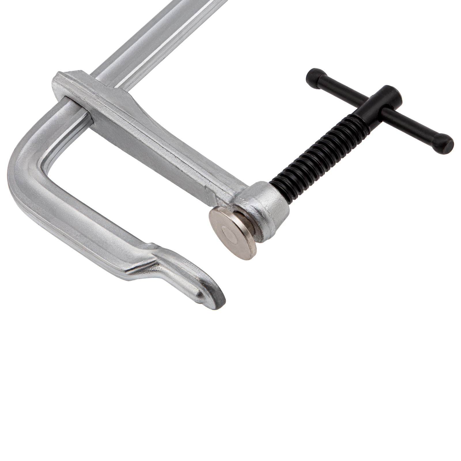 - Хромированное покрытие надежно защищает струбцину от коррозии.