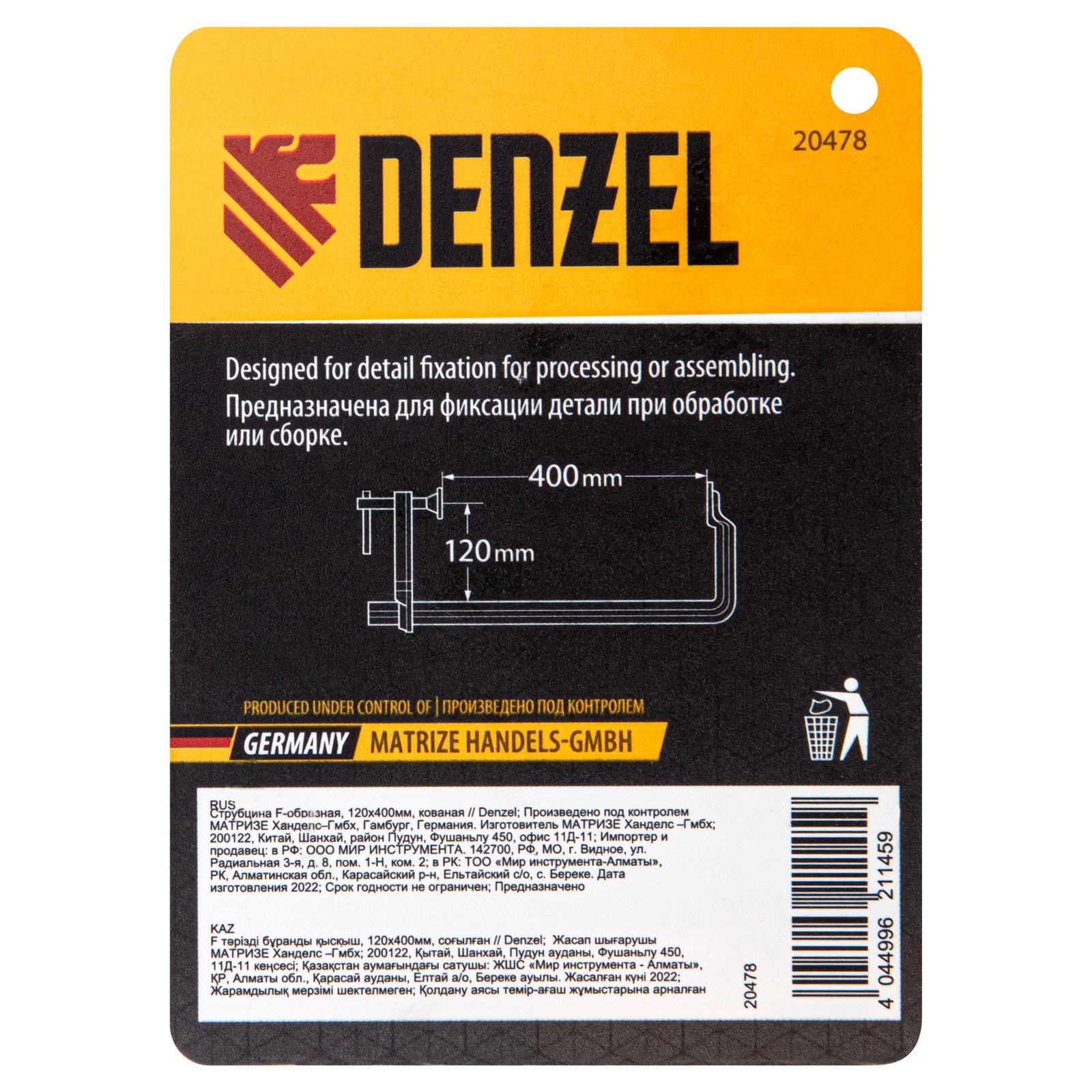 Струбцина F-образная, 120x400мм, кованая Denzel в Екатеринбурге