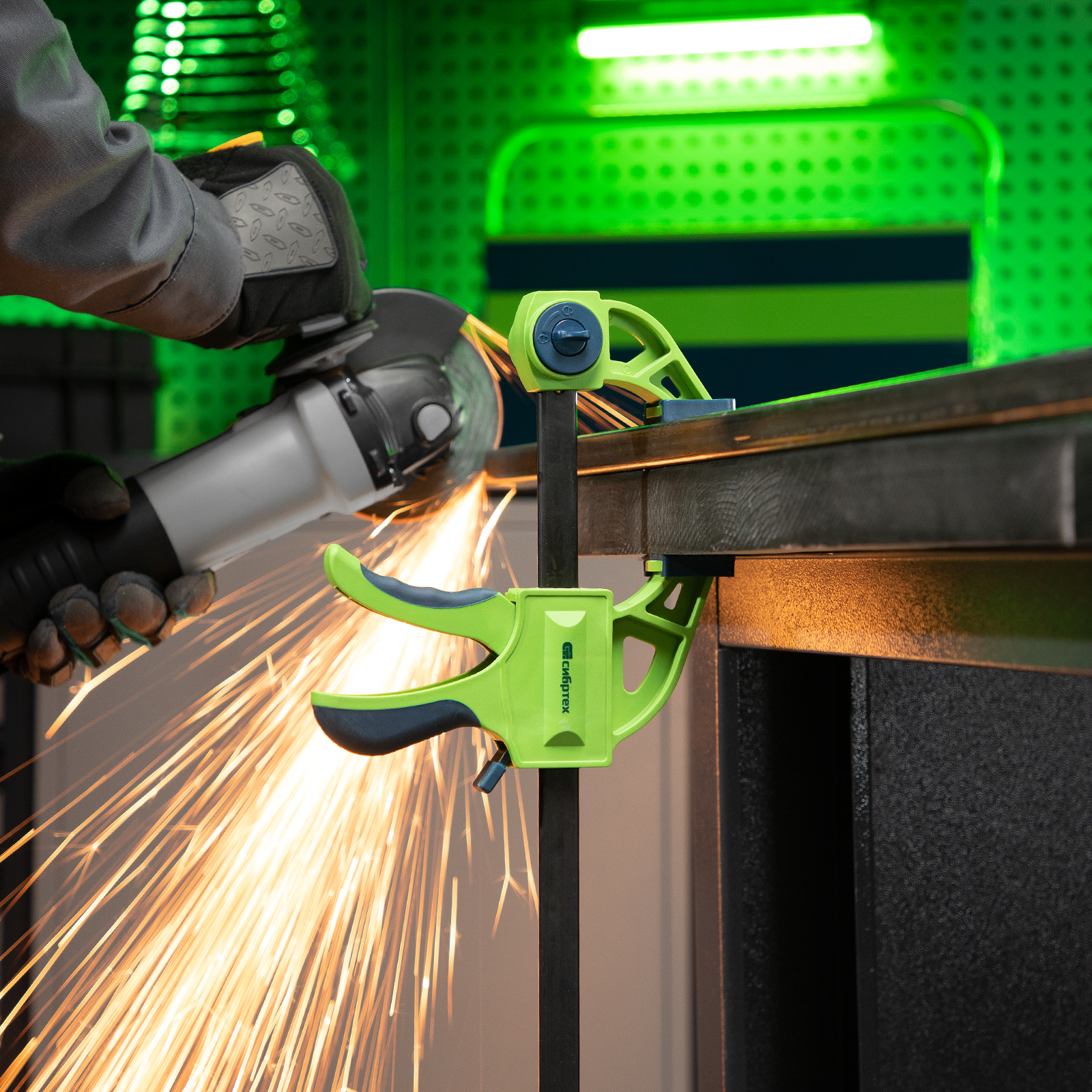 Струбцина F-образная, быстрозажимная, 150 х 70 х 360 мм, пластиковый корпус, фиксатор, двухкомпонентная рукоятка Сибртех в Екатеринбурге