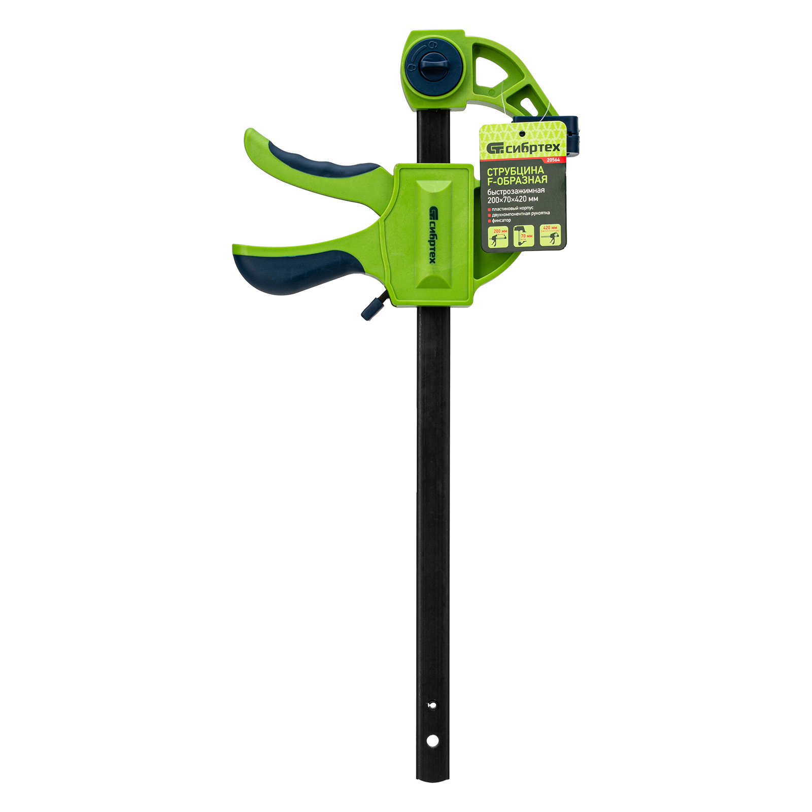Струбцина F-образная, быстрозажимная, 200 х 70 х 420 мм, пластиковый корпус, фиксатор, двухкомпонентная рукоятка Сибртех в Екатеринбурге